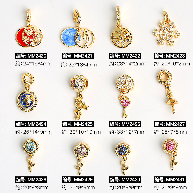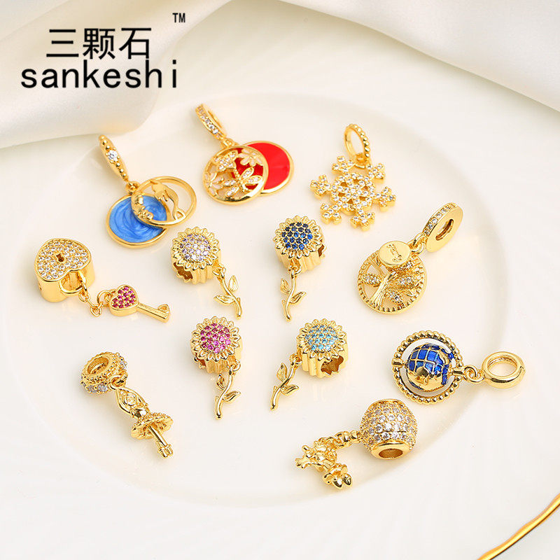 📚 滴油铜镀金吊坠地球仪 向日葵小挂件手链满钻配饰diy饰品制作材料