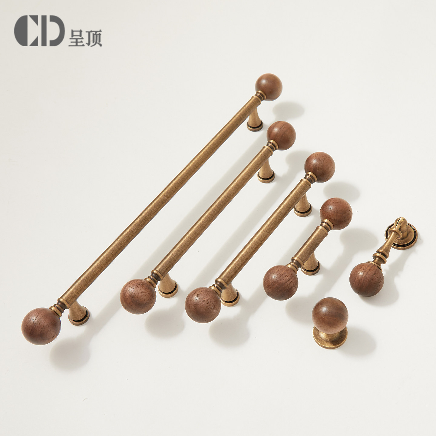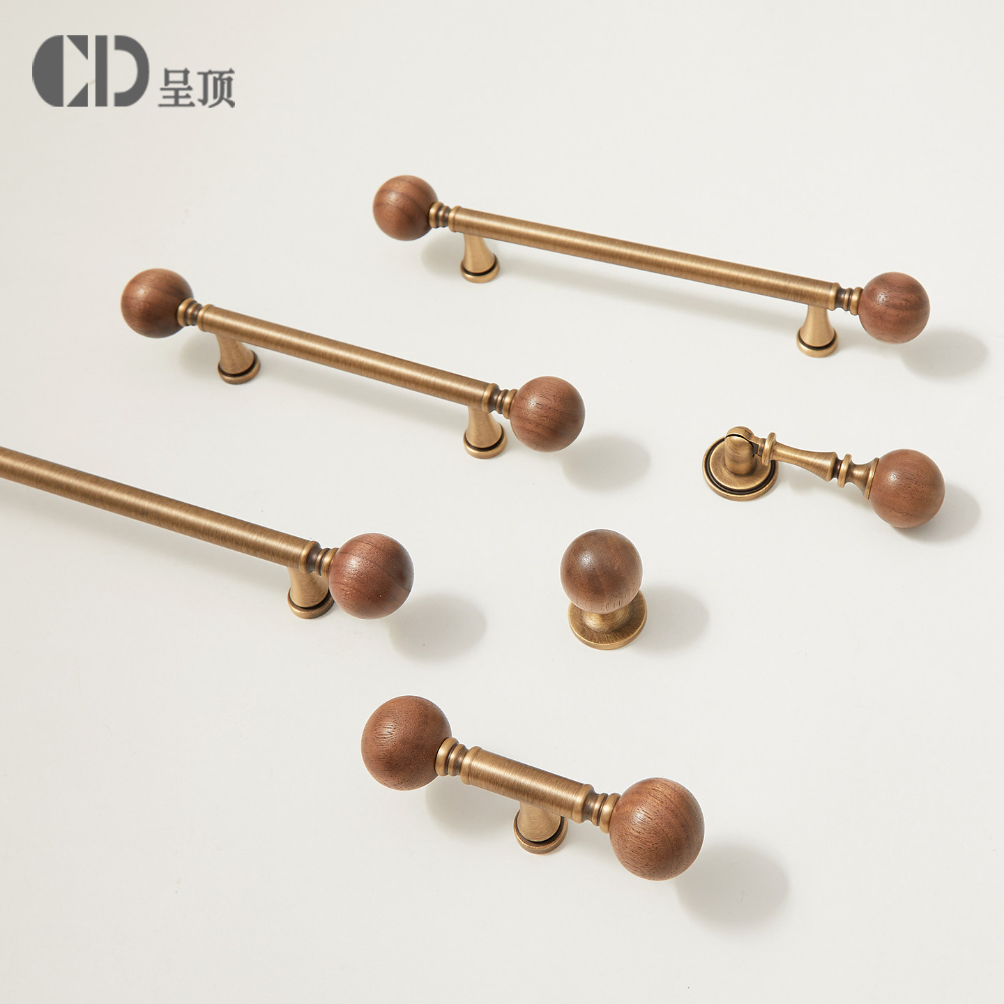 💥种草!中古风黄铜拉手胡桃木厨房衣柜门,券后仅11.4元,古铜色圆球把手太美了!