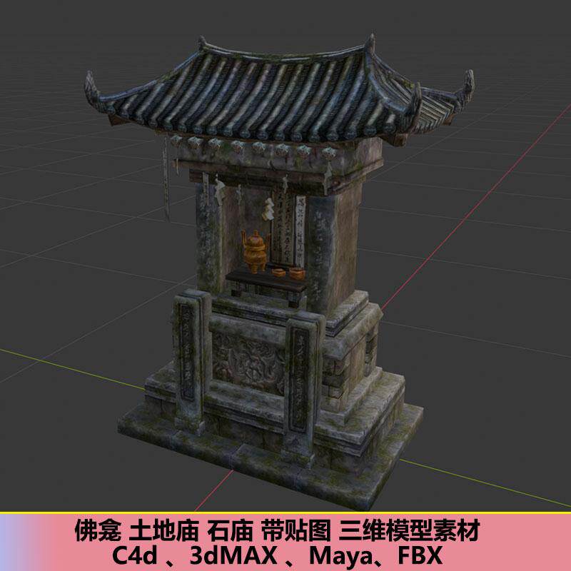 📚 石庙佛龛土地庙3dmax c4d maya FBX 三维模型素材带贴图带结构