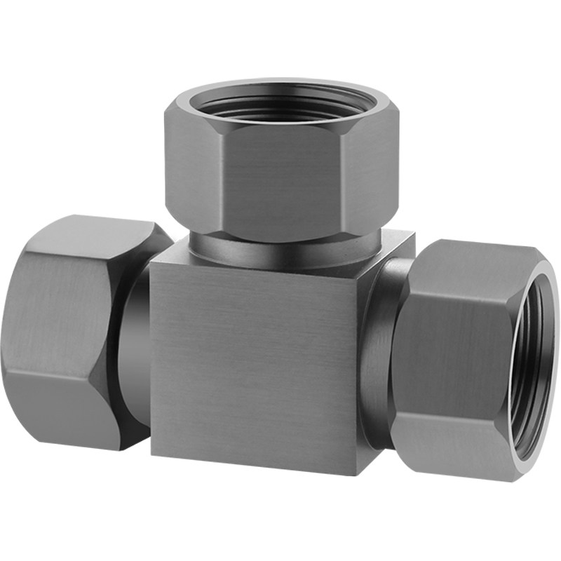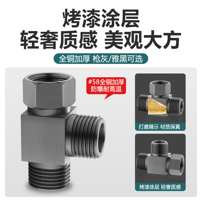 📚 一进二出角阀三通分水器带活接枪灰色水龙头一分二双出水全铜接头
