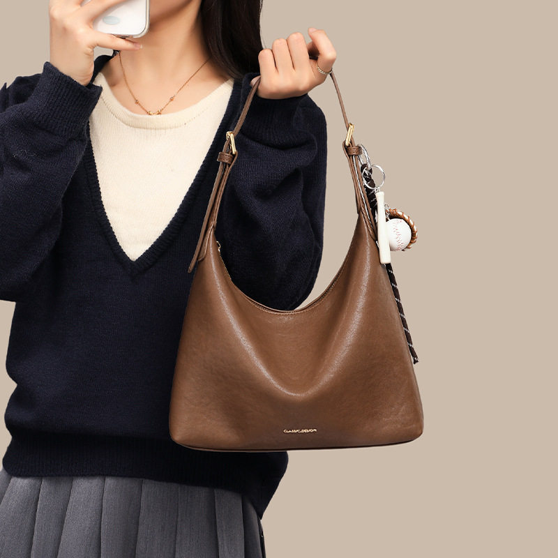 📚 包包女式2025新款斜挎包真皮女包hobo包感单肩腋下包通勤包