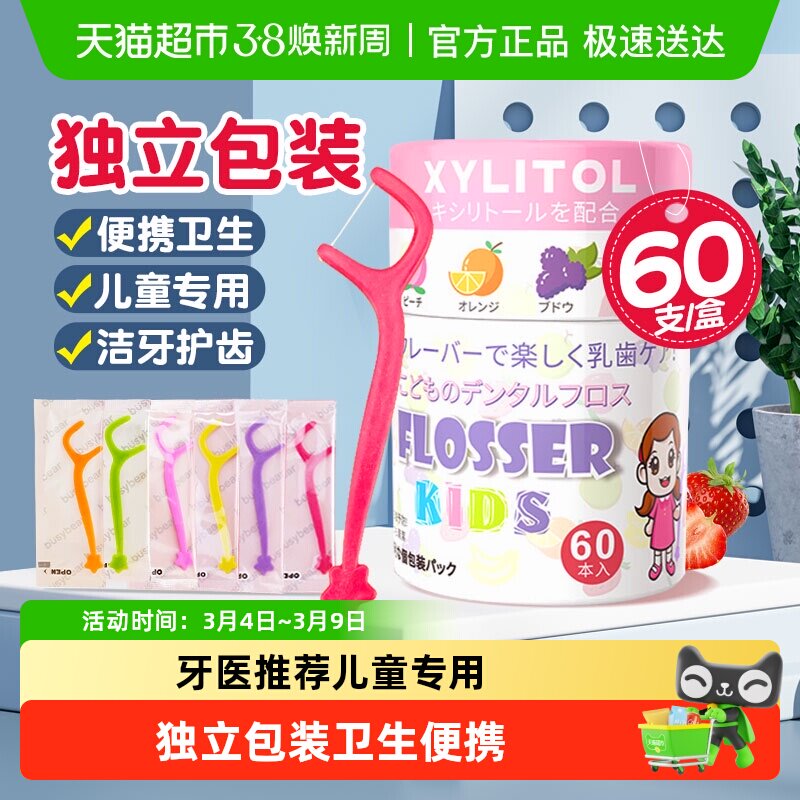 📚 busybear宝宝儿童专用超细牙线棒单独立包装便携牙签剔牙线