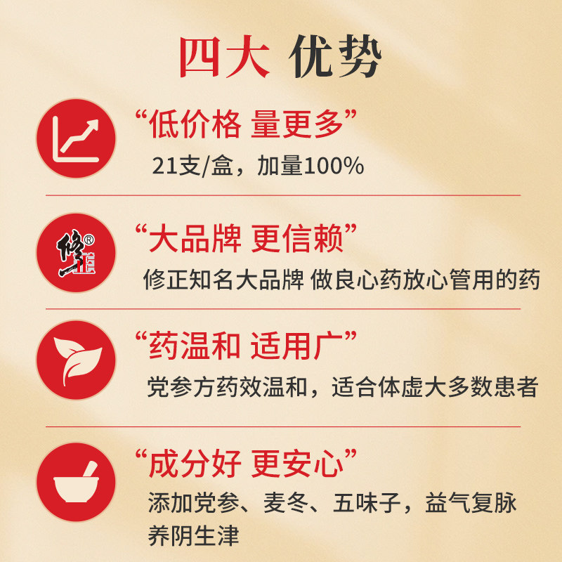 📚 修正生脉饮党参官方旗舰店正品生脉饮口服液益气养血补气血补血