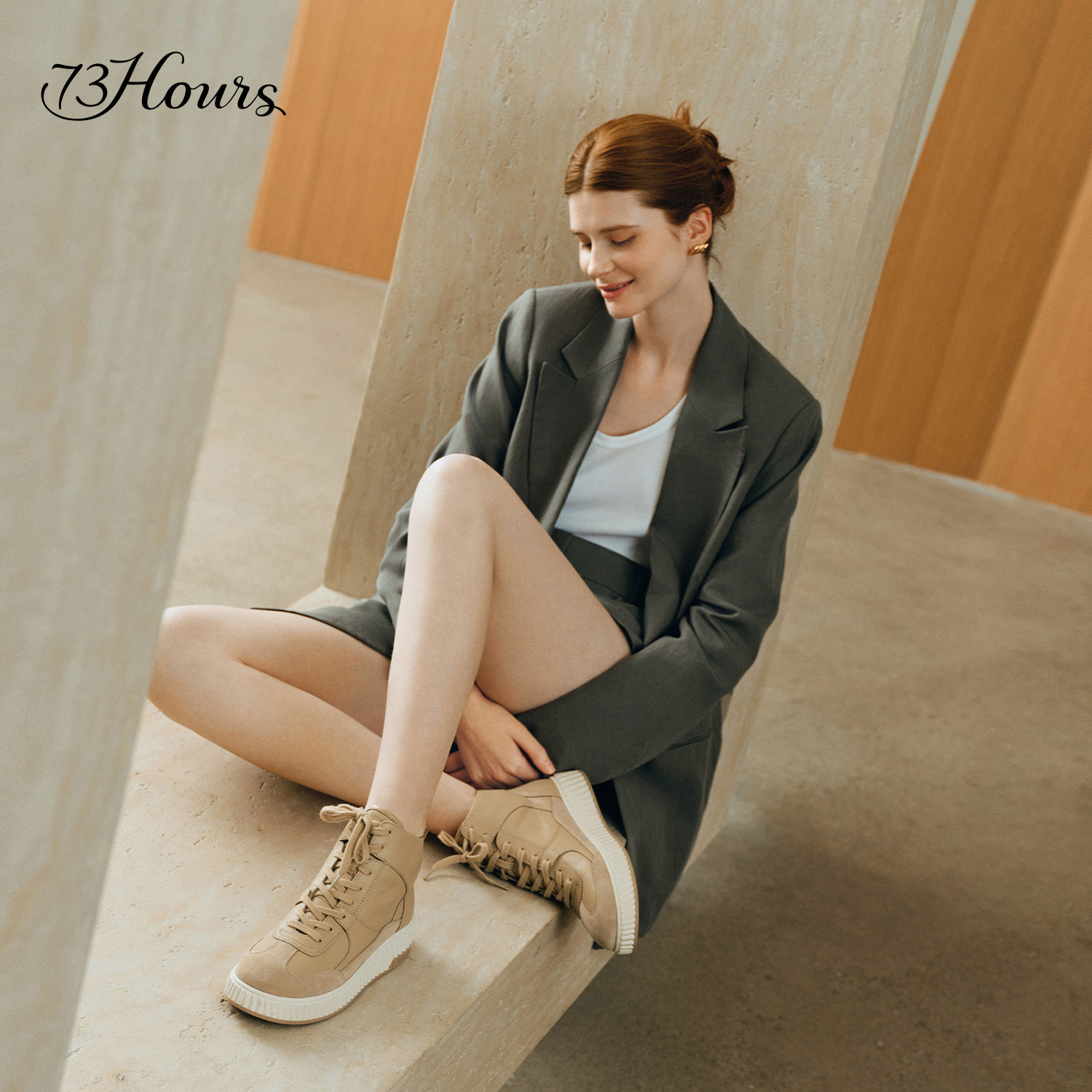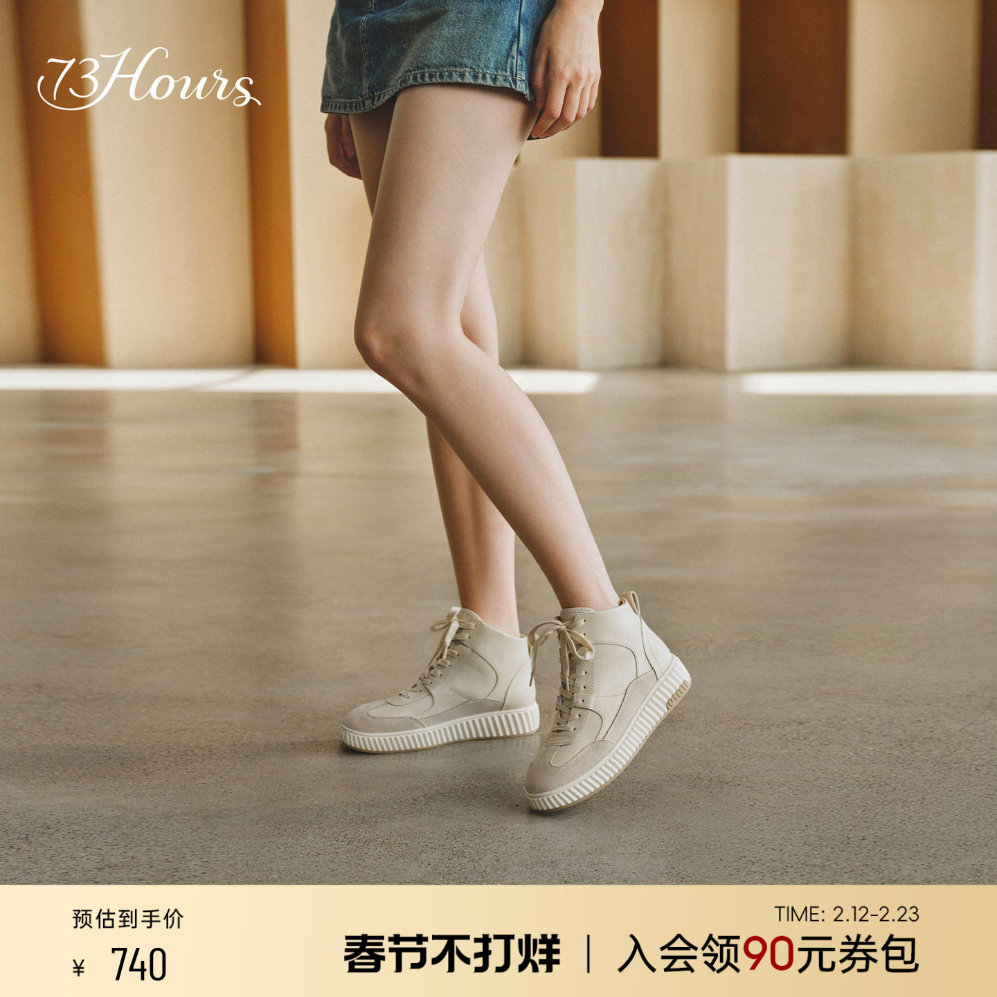 📚 73hours女鞋融化奶油2025冬季新款厚底增高复古饼干底马丁靴短靴