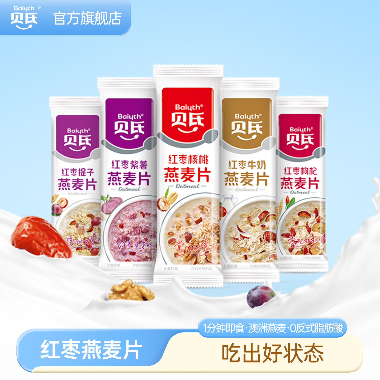 📚 贝氏五红枣牛奶燕麦片早餐营养麦片即食冲泡懒人冲饮独立小条包装