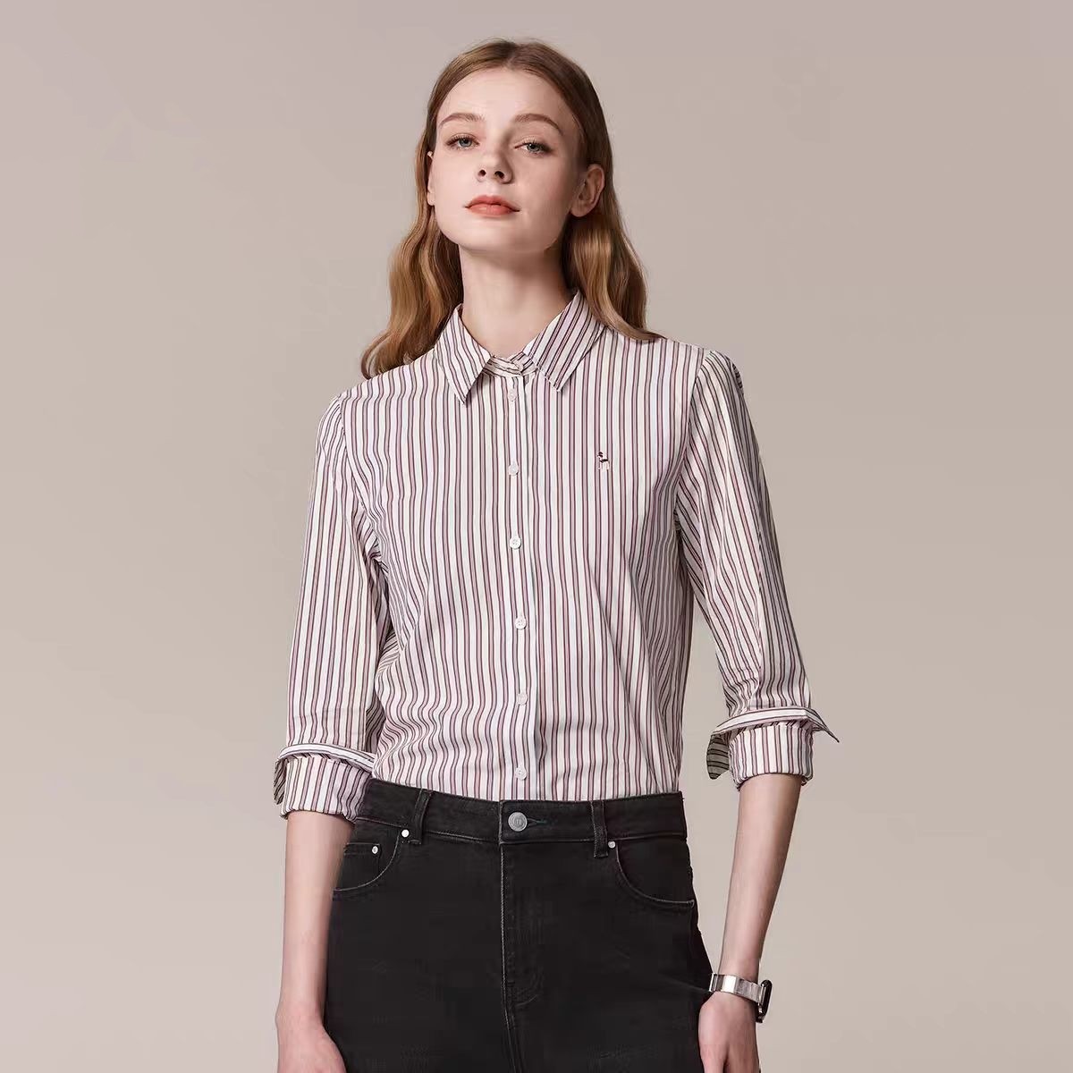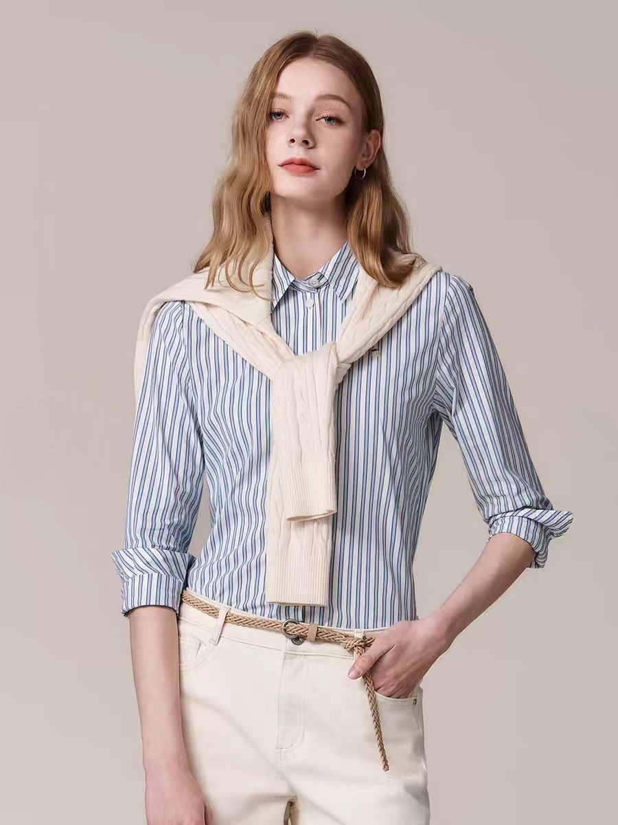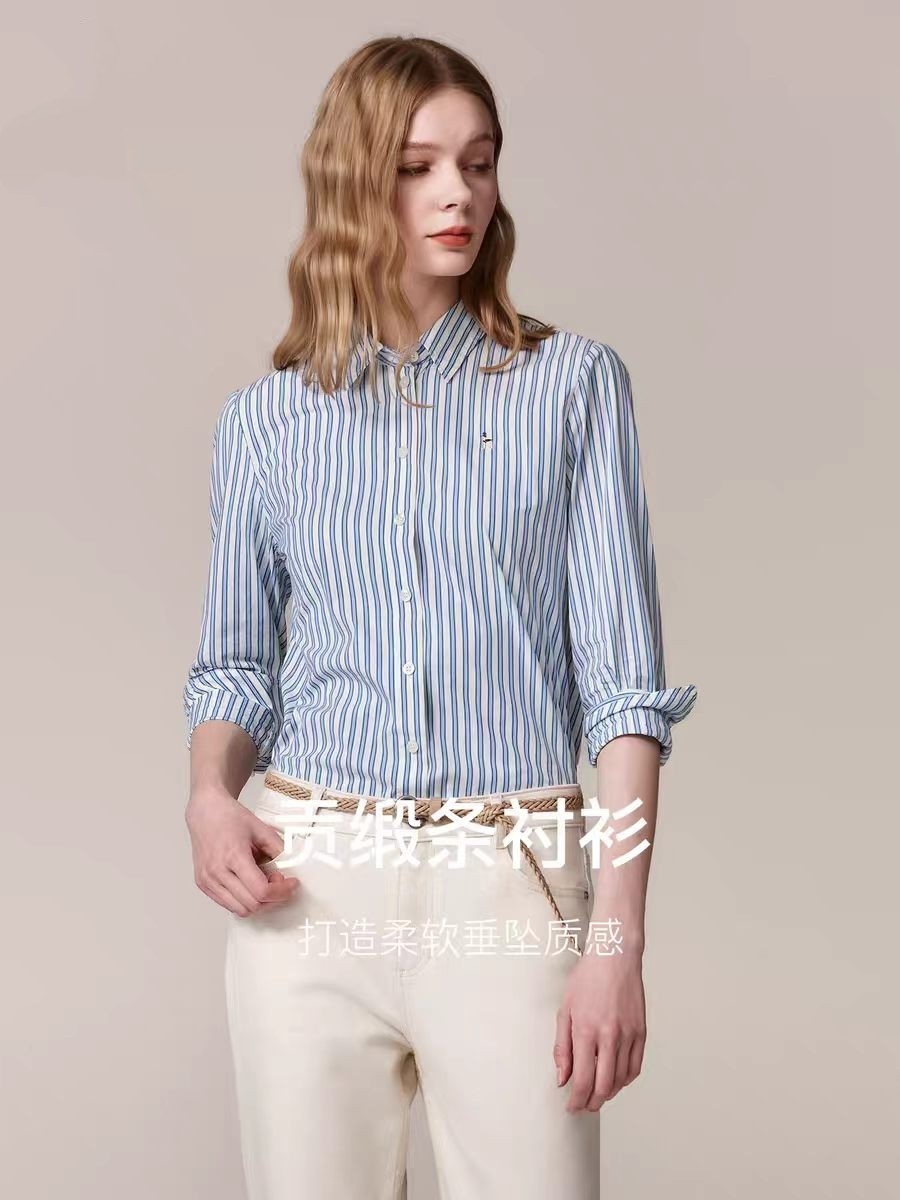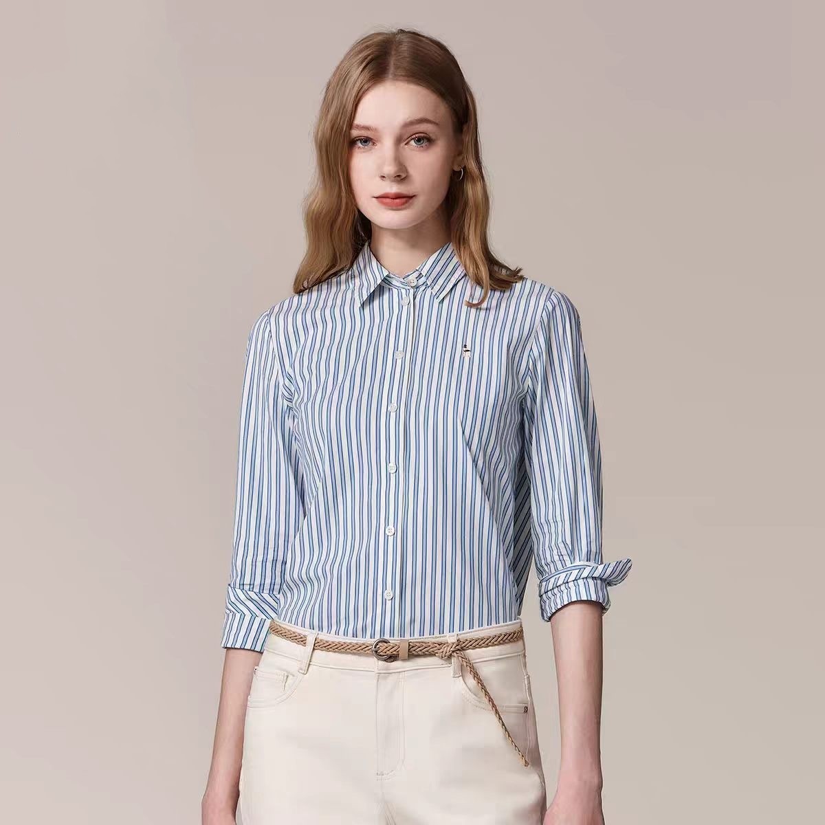 📚 2026春夏新品条纹衬衫女士时尚休闲通勤百搭长袖上衣