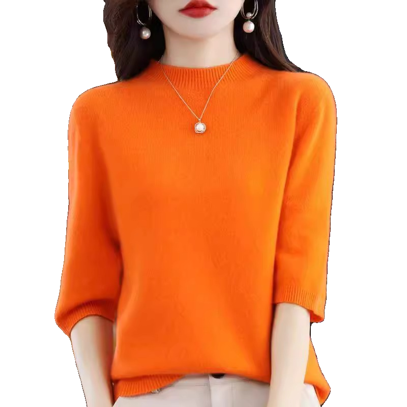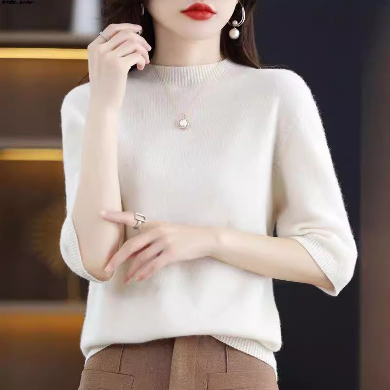 📚 2025秋季新羊绒衫短袖女半高领羊毛简约宽松薄款七分袖羊毛衫ins