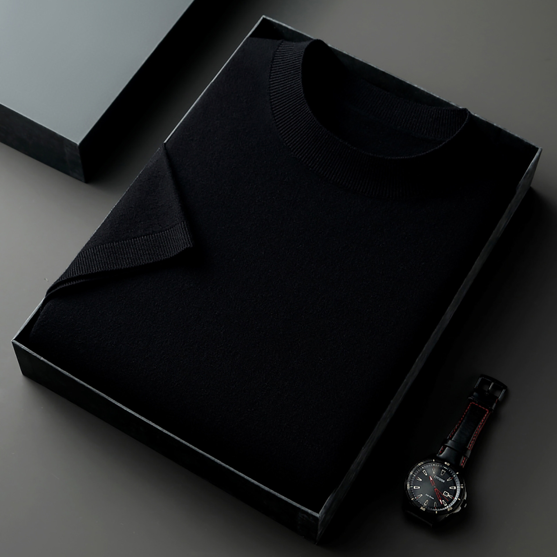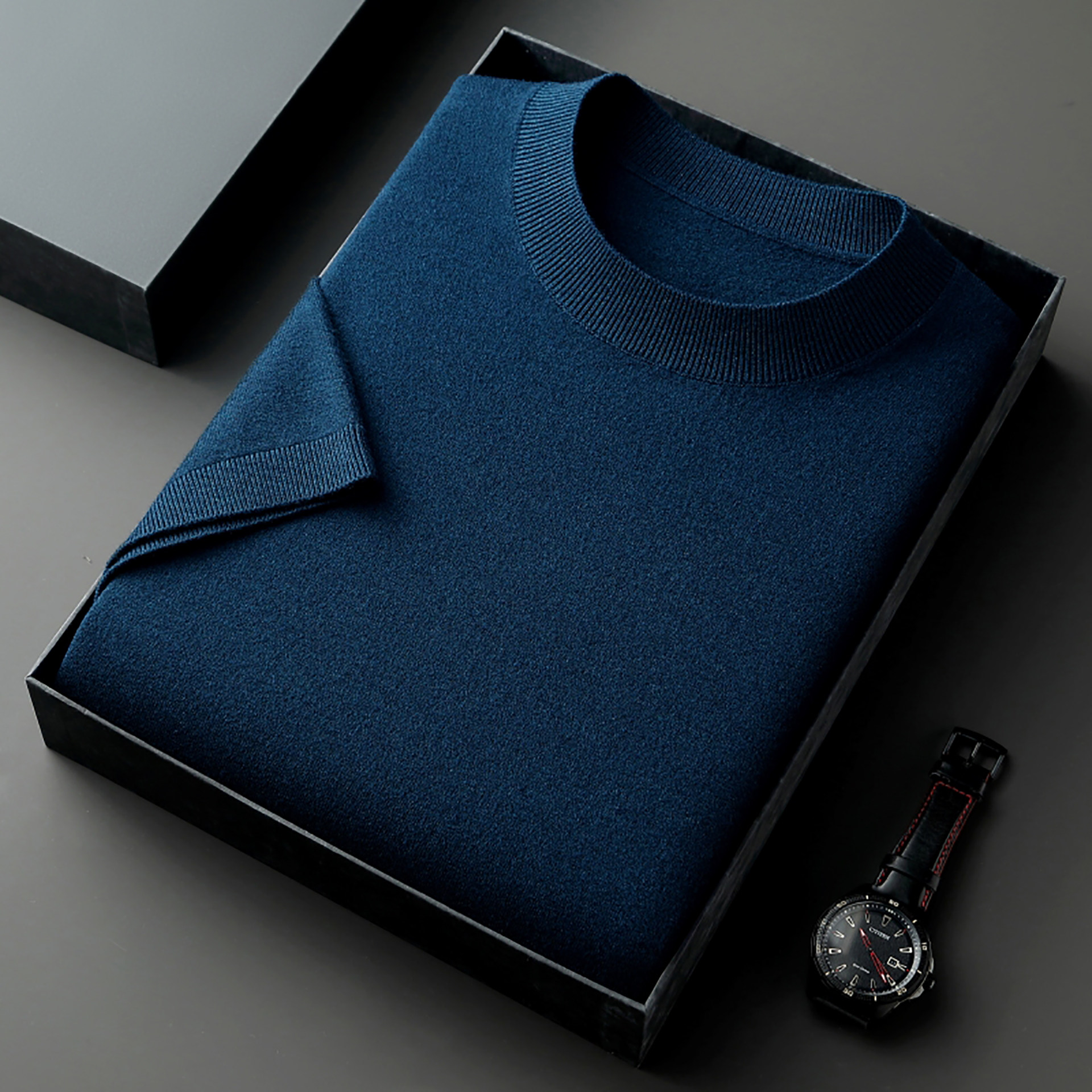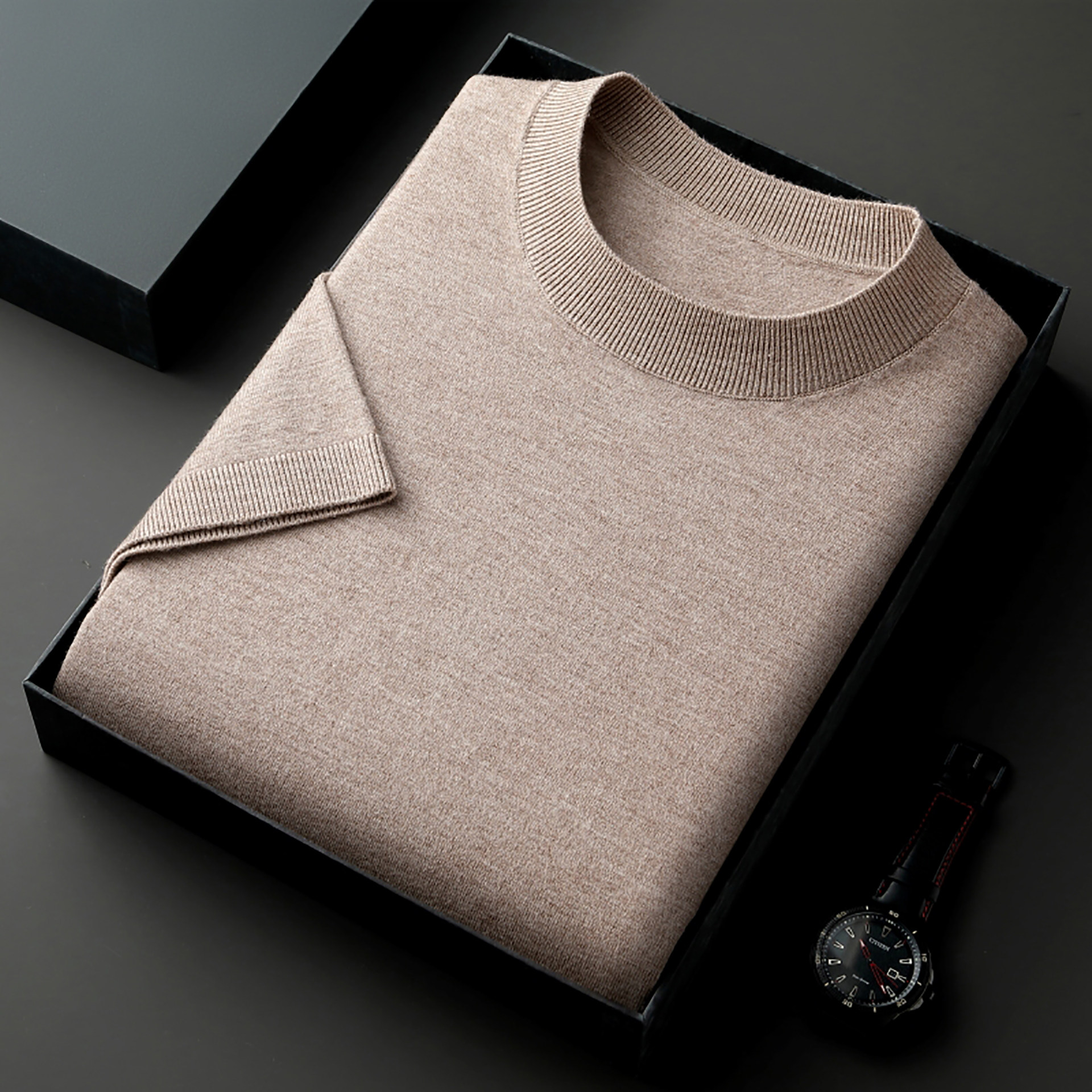 📚 精纺100纯山羊绒衫短袖t恤男圆领薄款商务加肥加大码打底半袖毛衣