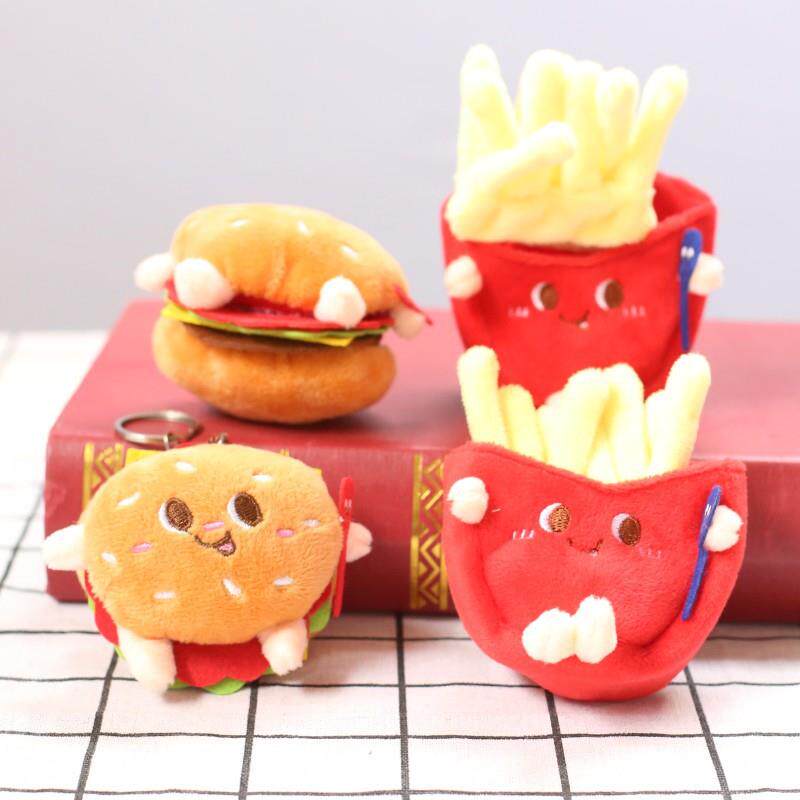 📚 爆款可爱呆萌汉堡热狗鸡腿毛绒挂件小公仔抓机娃娃书包挂饰钥匙环
