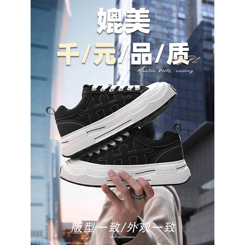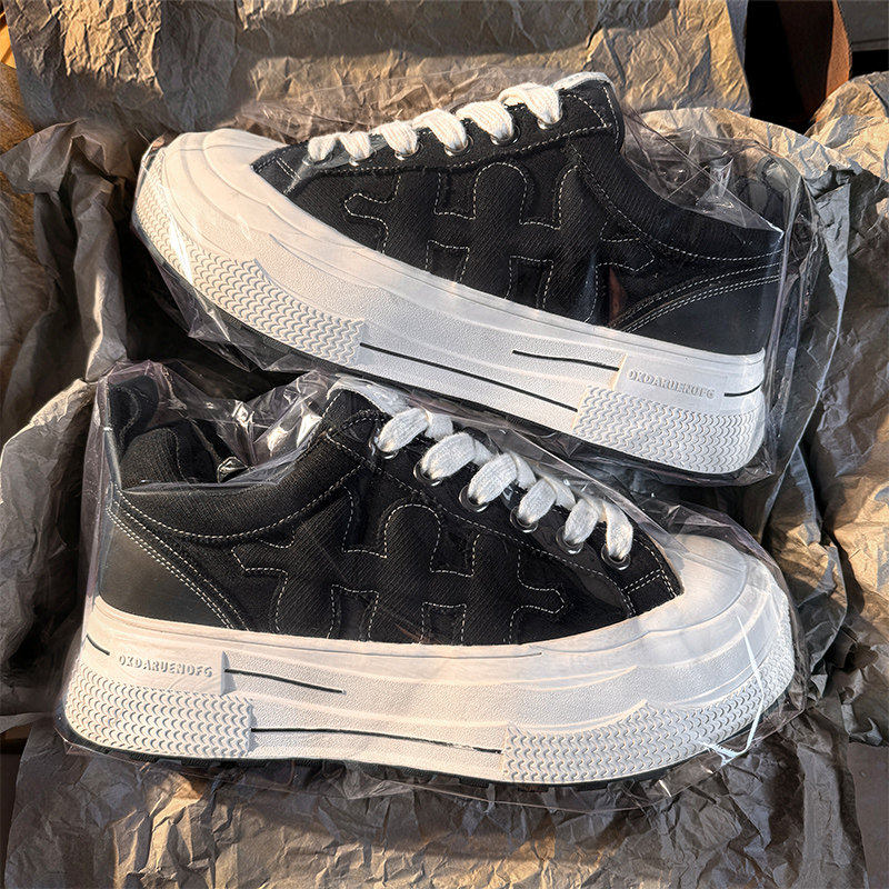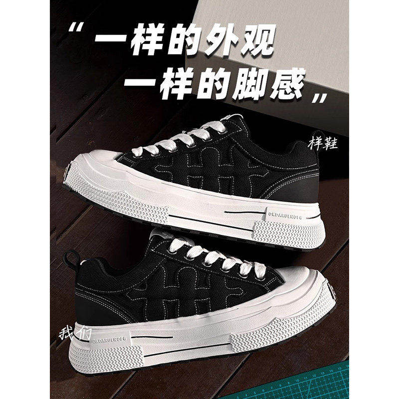 📚 王鹤棣同款重奏黑色梅花厚底男女鞋2026新款春季增高休闲帆布鞋潮