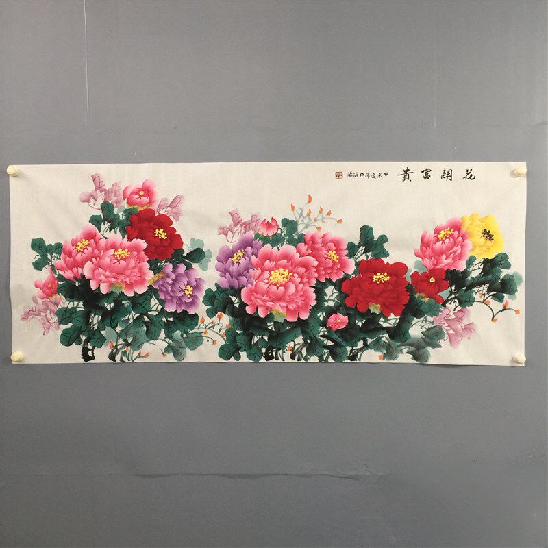 📚 张爱萍老师手绘牡丹国画小六尺横幅客厅沙发背景墙装饰画花开富贵