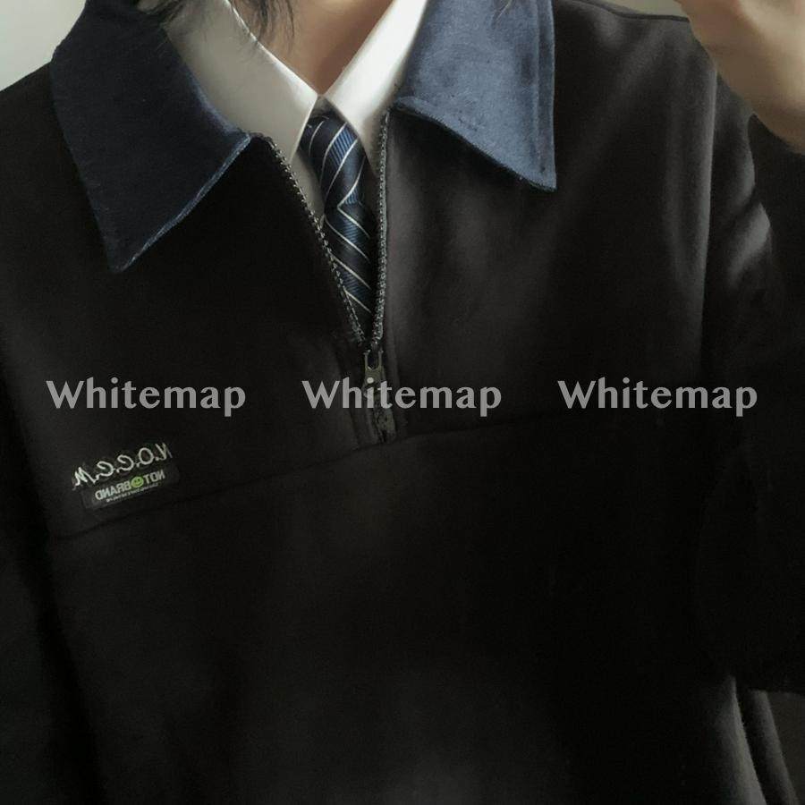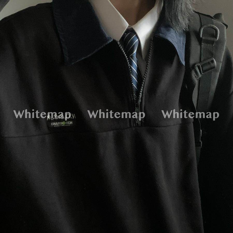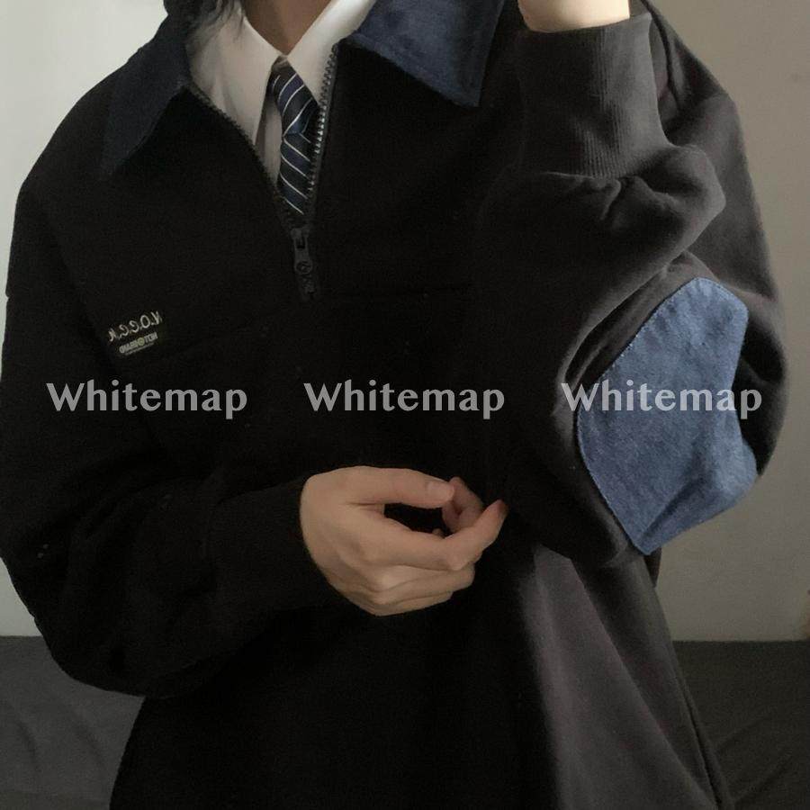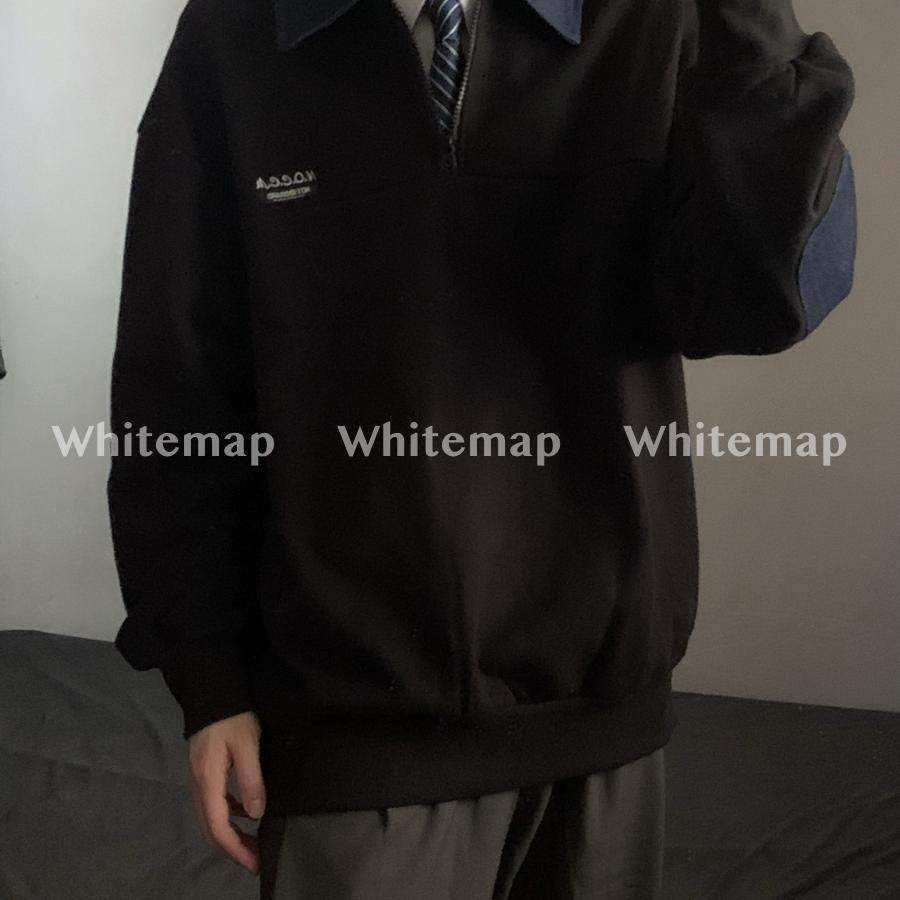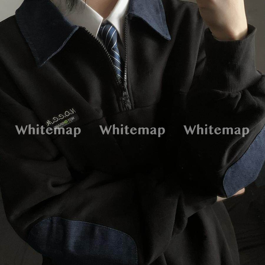 📚 wtmp日系复古拼接牛仔领半拉链刺绣卫衣男女潮牌宽松休闲翻领上衣