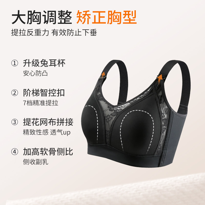 📚 安娜蜜语【7档双重提拉】全罩杯薄款内衣女大胸显小蕾丝大码文胸