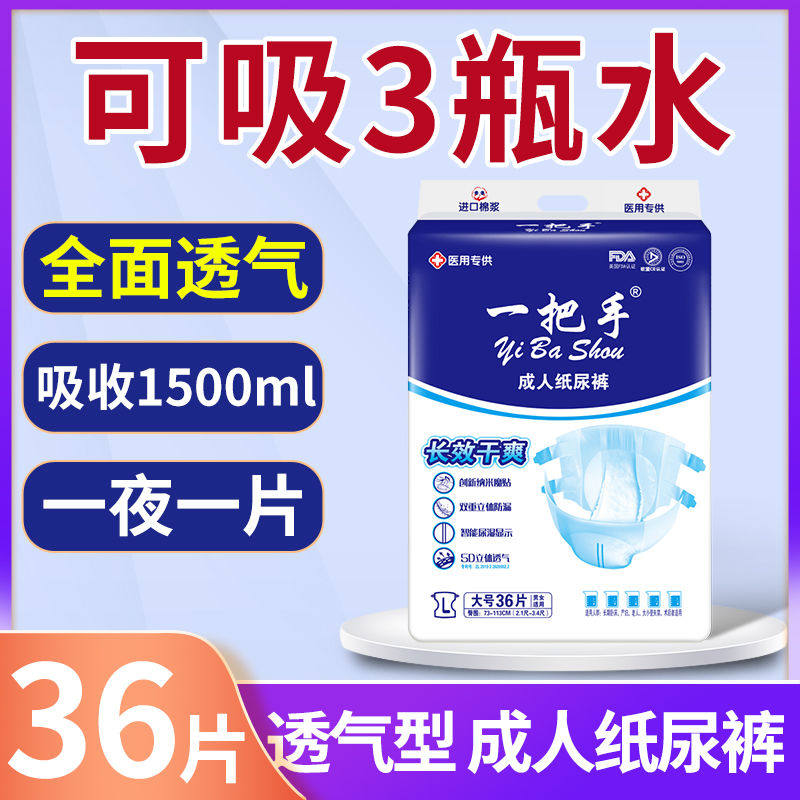 📚 一把手成人纸尿裤XL码30片老年人通用尿不湿透气防漏粘贴式护理垫