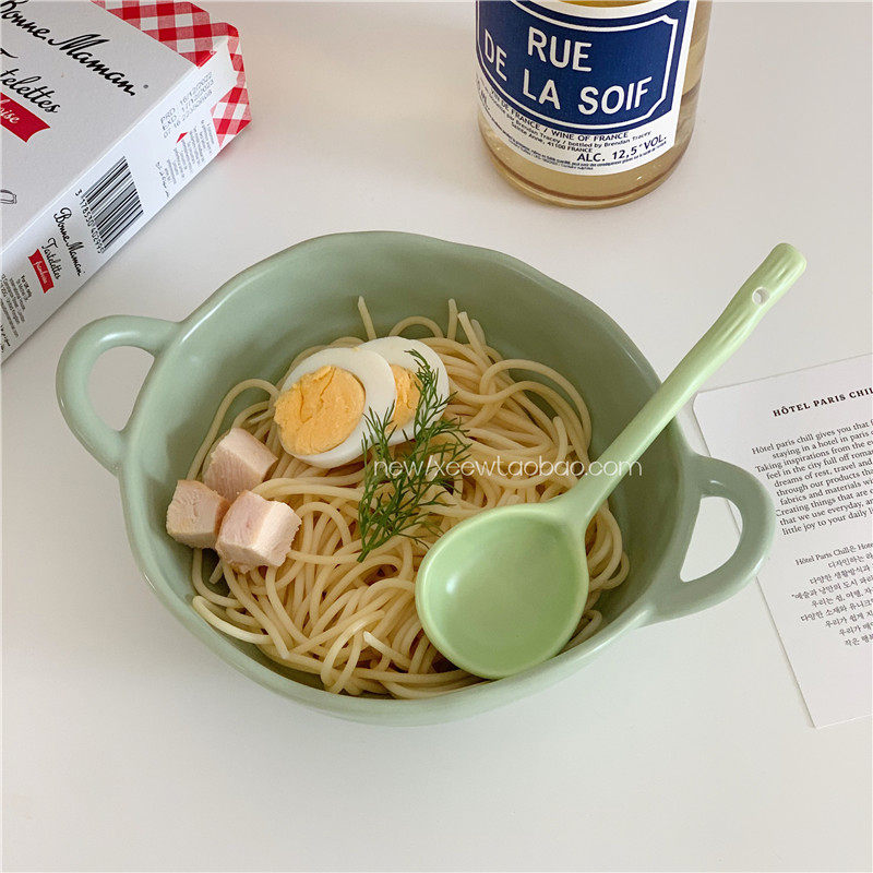 📚 陶瓷勺子ins可爱糖果色小汤勺日式家用吃饭勺高颜值长柄勺甜品勺
