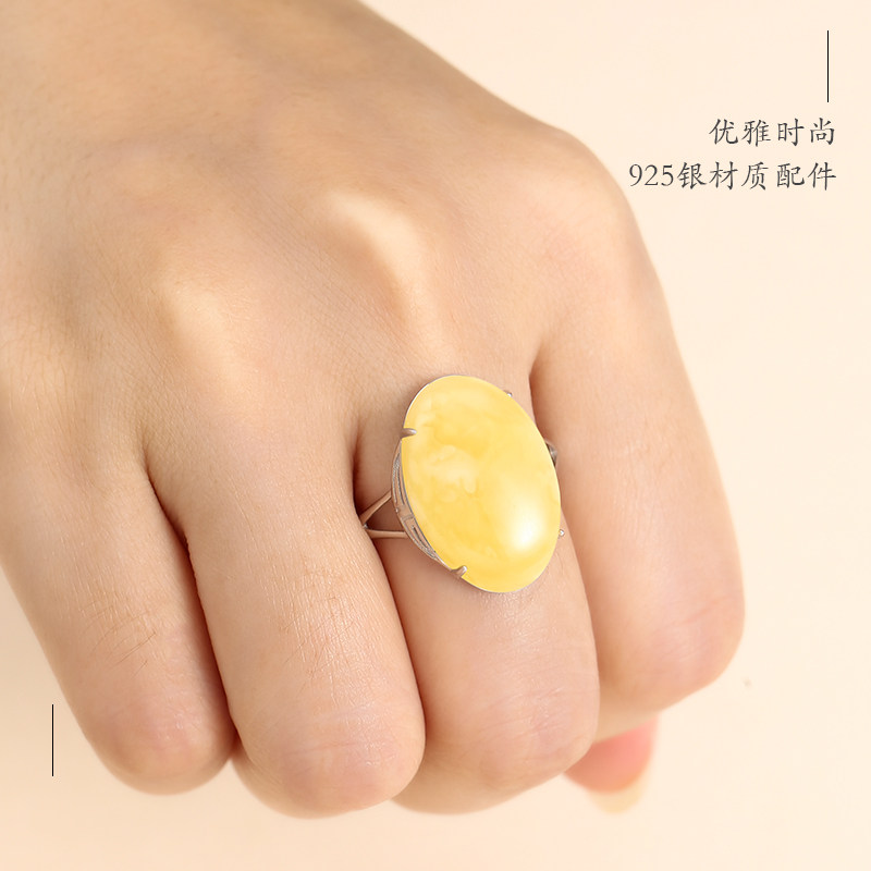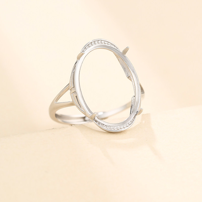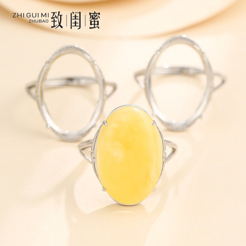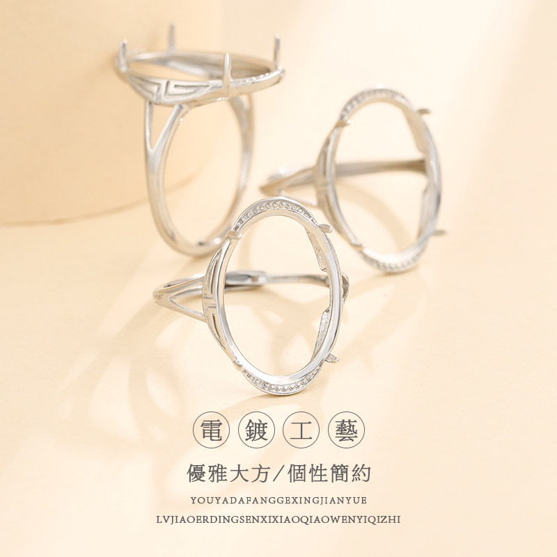 📚 925纯银绿松石戒指空托简约气质戒托空托镶嵌碧玉蜜蜡戒托女14*19