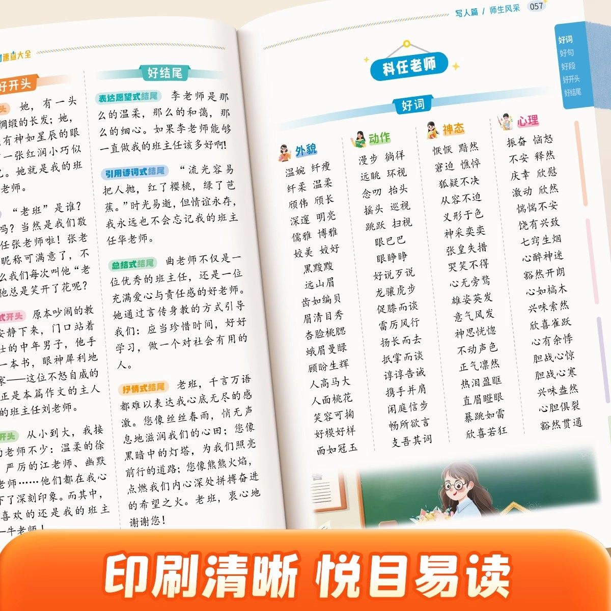 🎉总结:如果你正在寻找一套全面的作文素材工具,那么这款书行大语文素材词典速查大全绝对是你的不二之选!它包含了小学作文写作素材、名人名言歇后语等丰富的内容,让你在写作过程中更加得心应手。快来试试吧,我相信你一定会爱上它的!