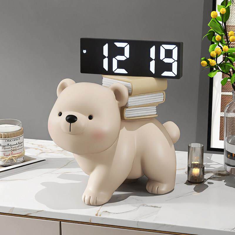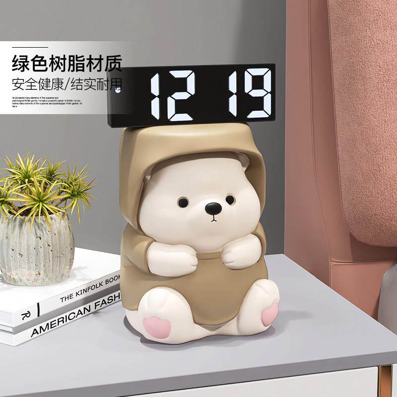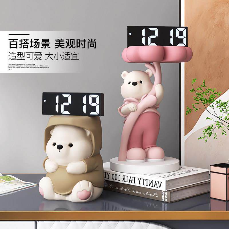 📚 创意熊摆件数字电子时钟客厅电视柜酒柜钟表家居装饰品床头柜摆台