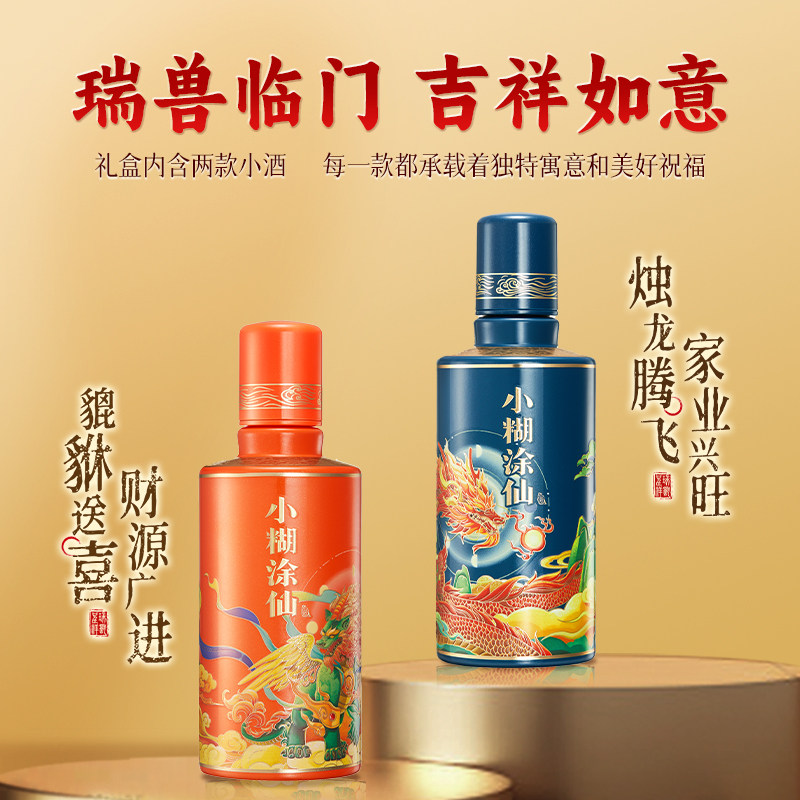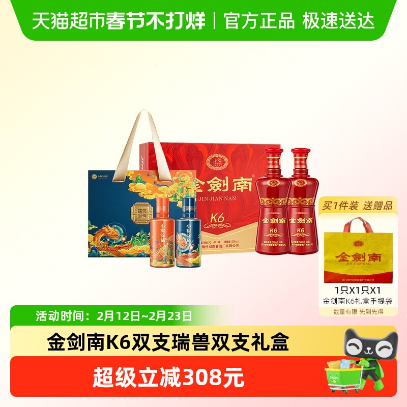 📚 剑南春K6双支礼盒52度500ml*2瓶礼盒装+小糊涂仙瑞兽呈祥小酒礼盒