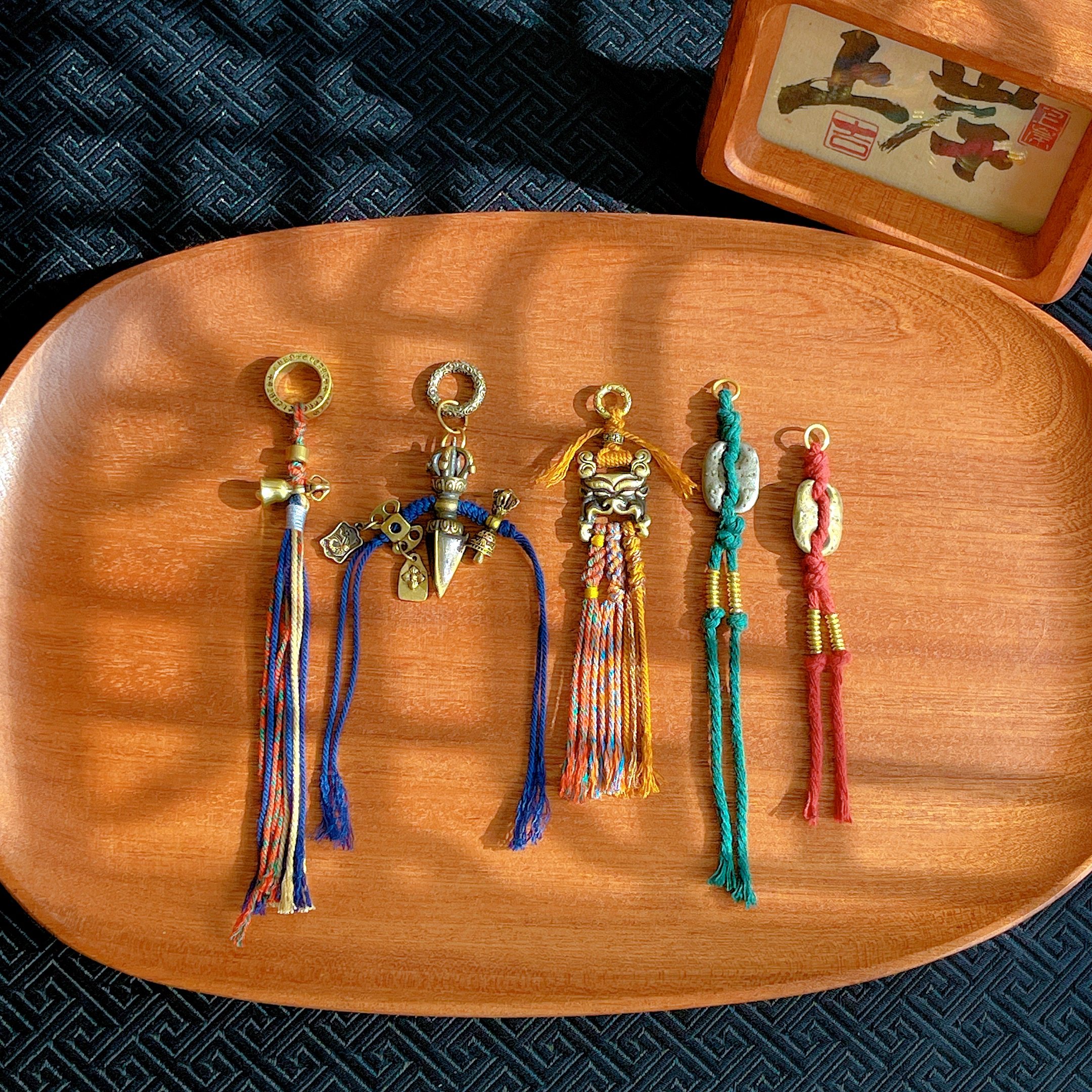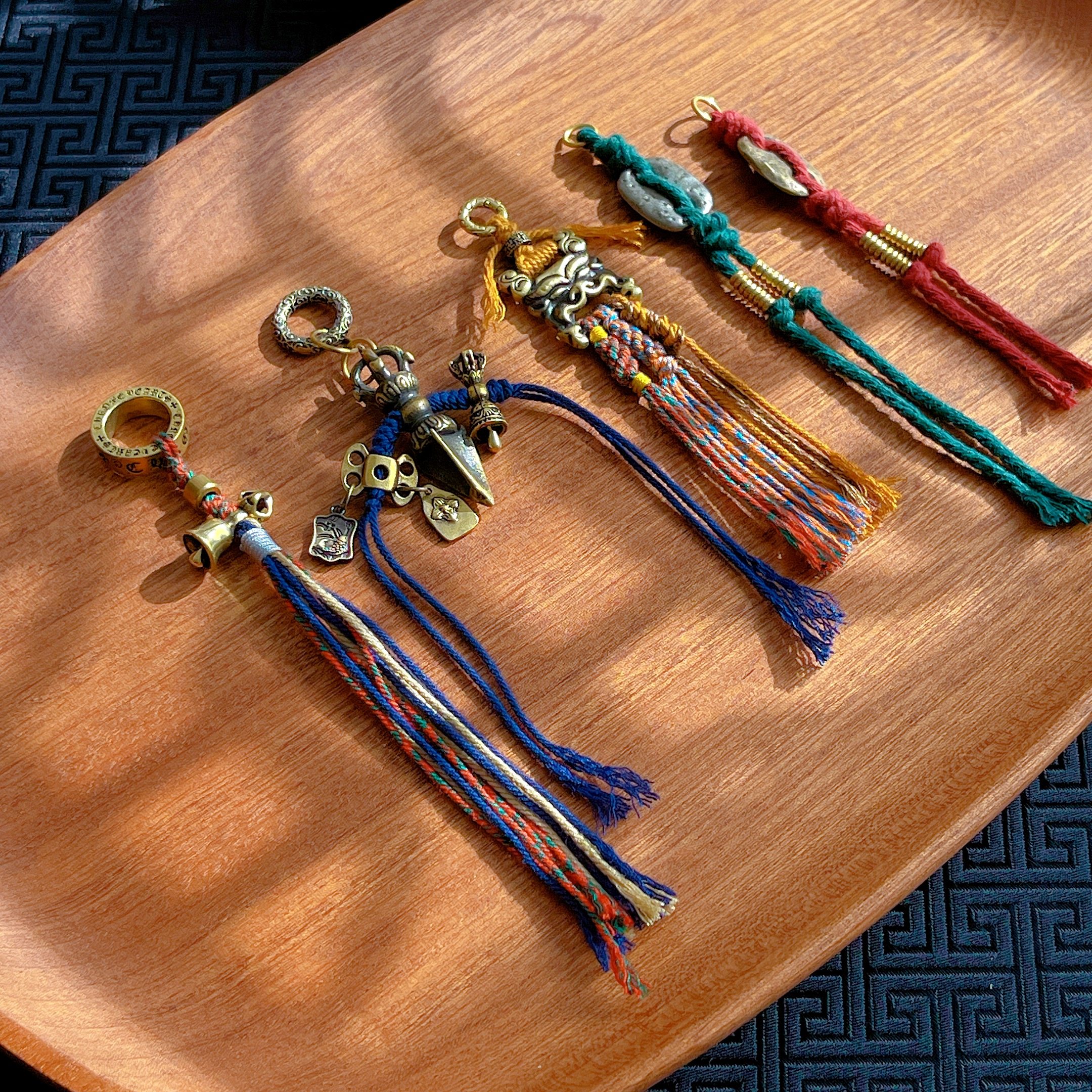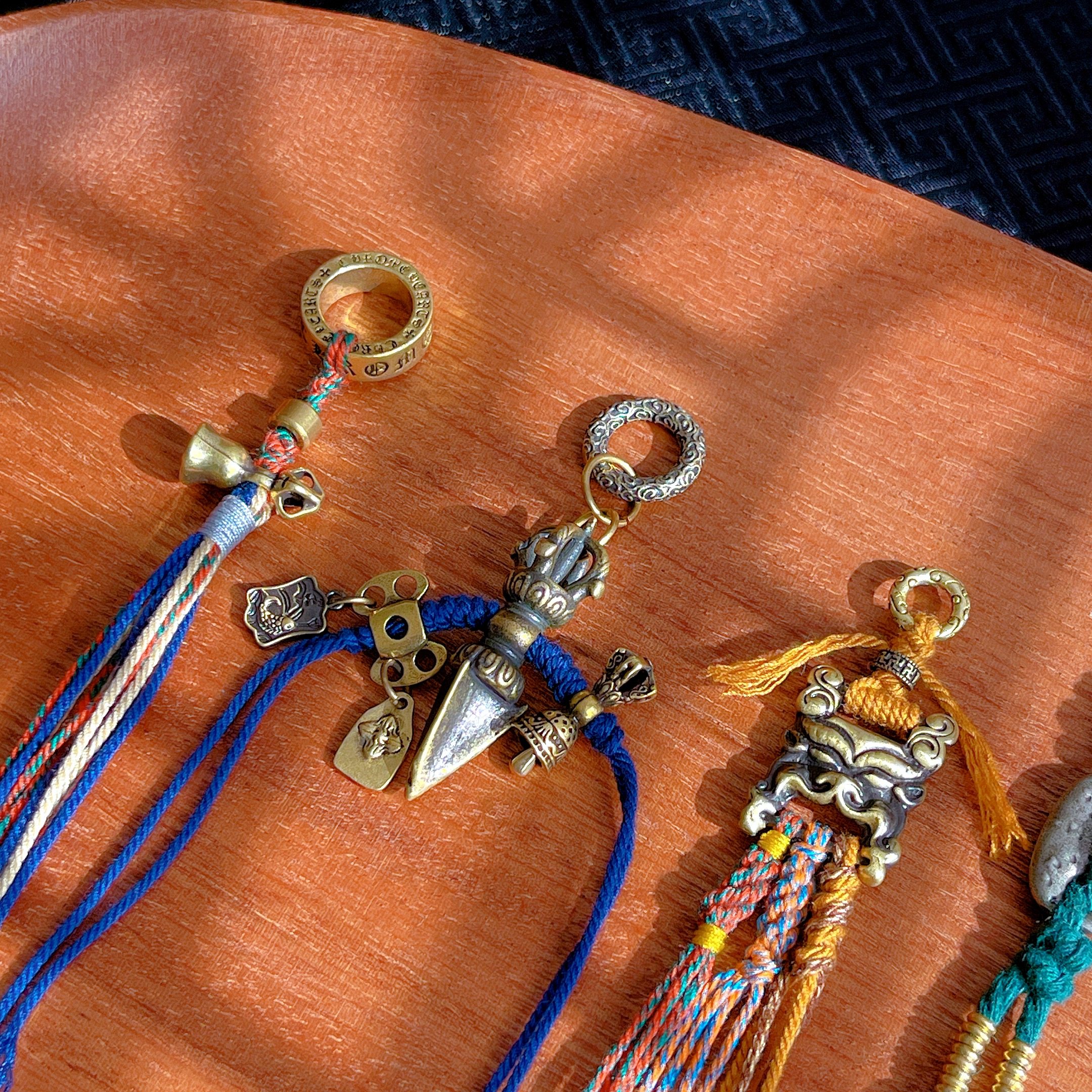 📚 藏式文玩配饰黄铜金刚杵金刚铃经书扣侧挂佛珠流苏小滴溜吊坠diy