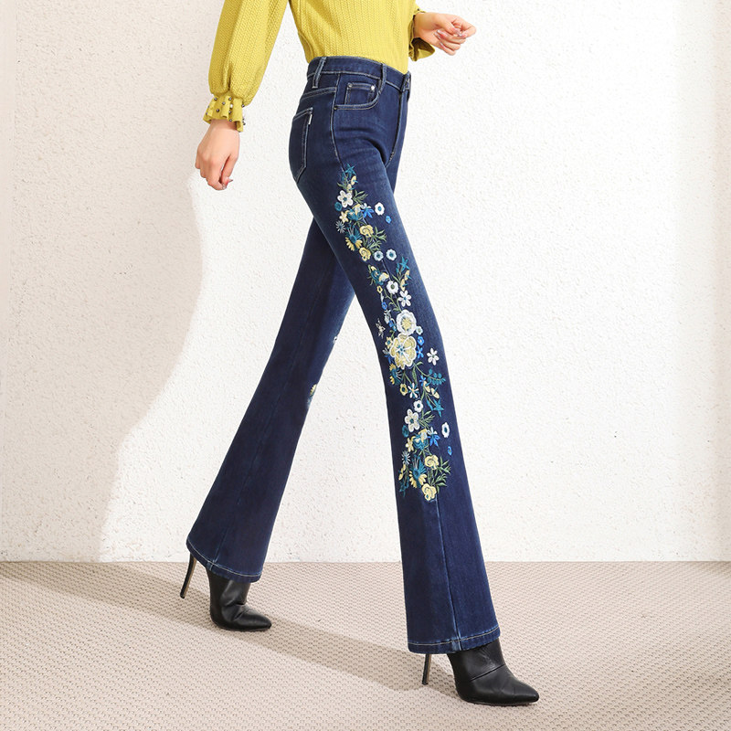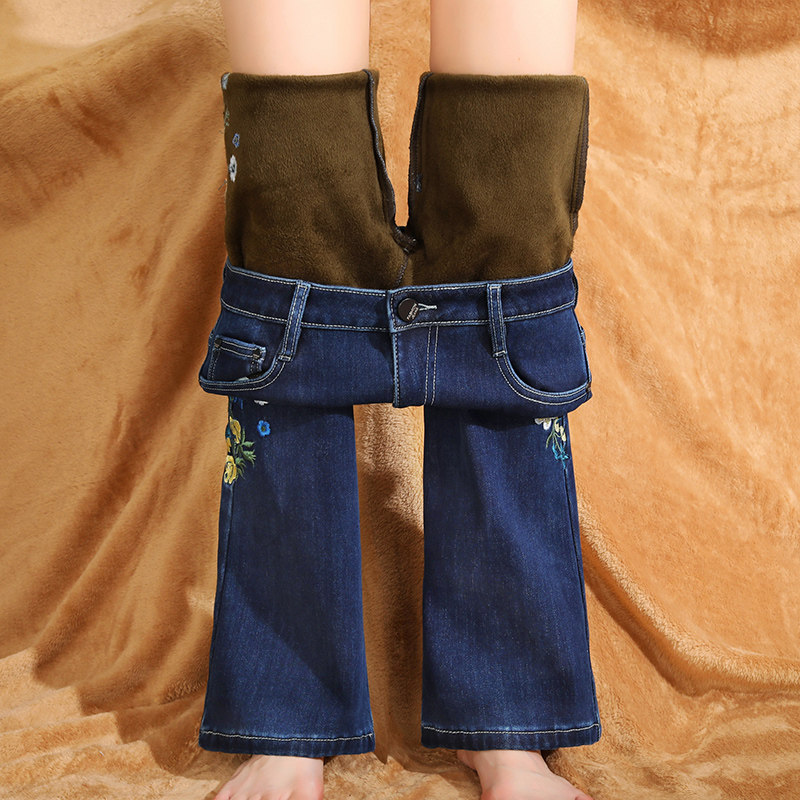 📚 风姿歌高腰秋冬2026年新款加绒保暖舒适喇叭裤刺绣大码牛仔裤女