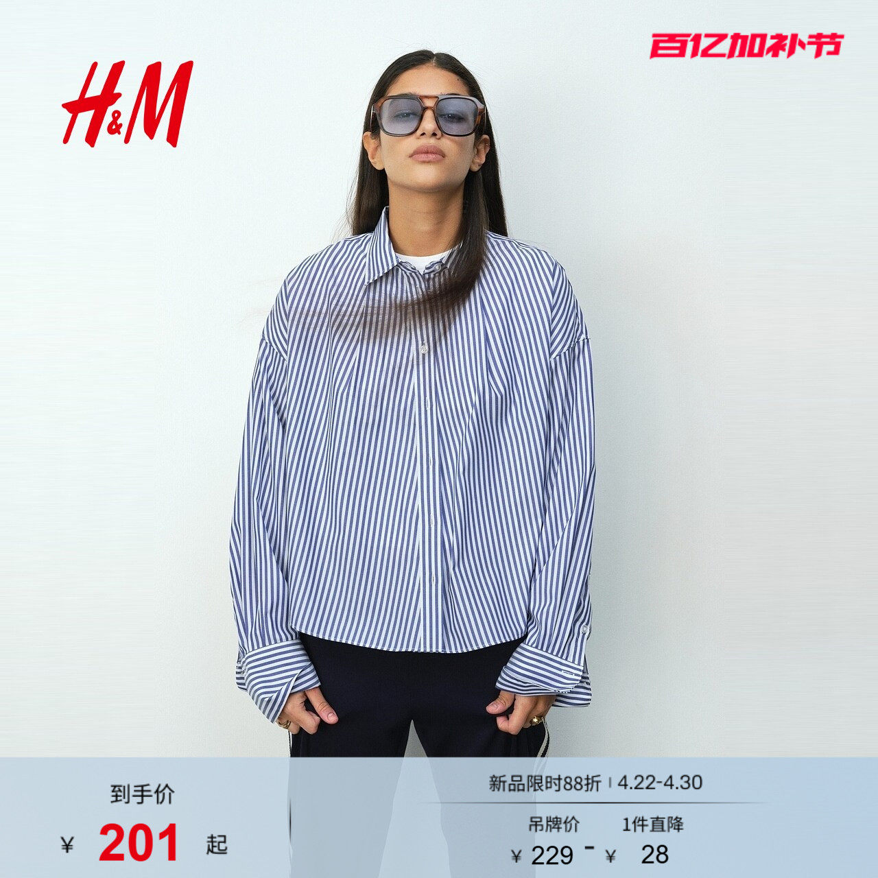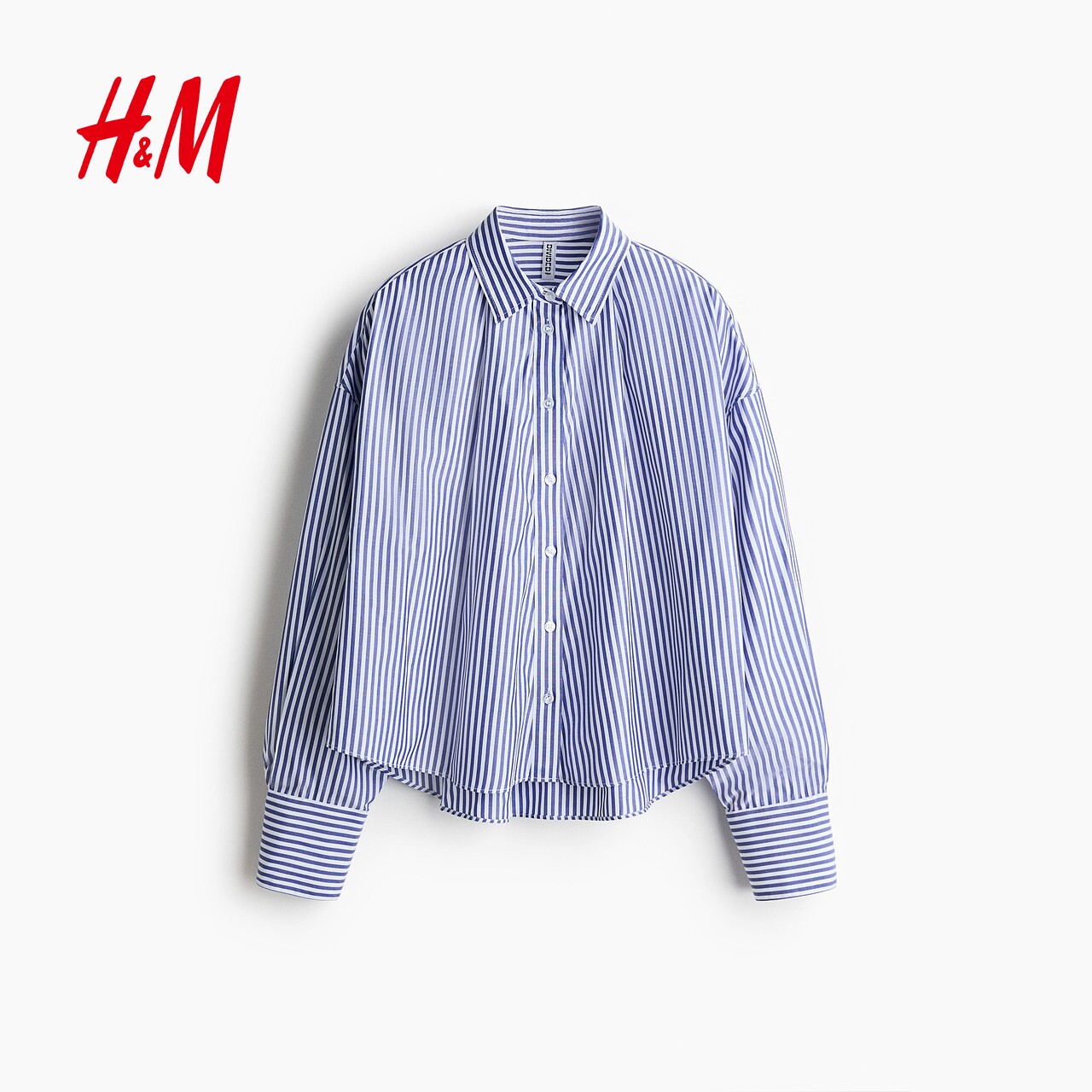 📚 HM女装衬衫夏季高智感衬衫智性条纹美学宽松版衬衫外套1323410