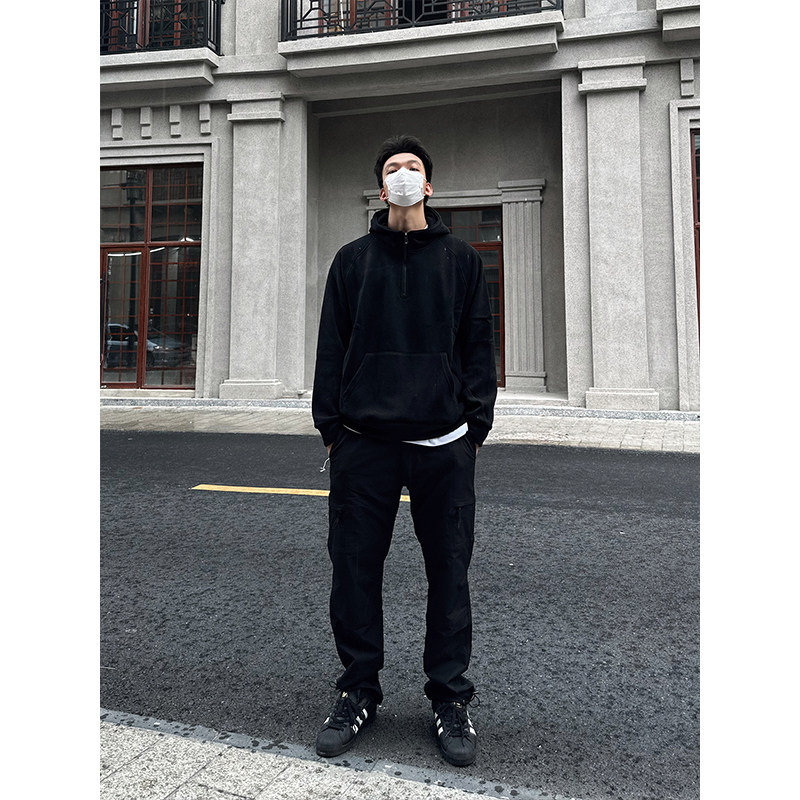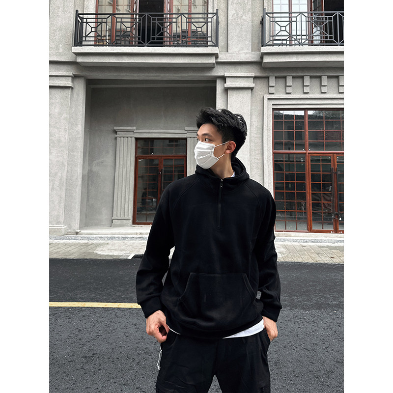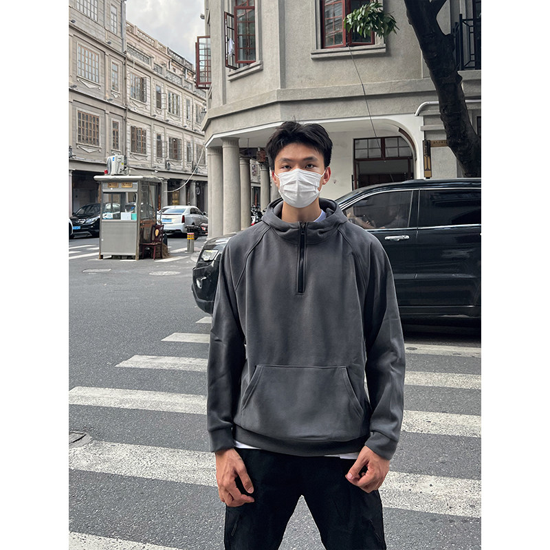 📚 TBKL原创 连帽半拉链卫衣男重磅秋冬加绒上衣纯色复古夹克外套潮