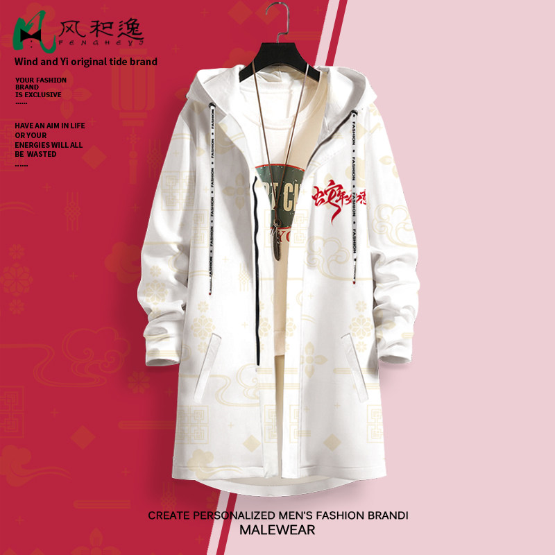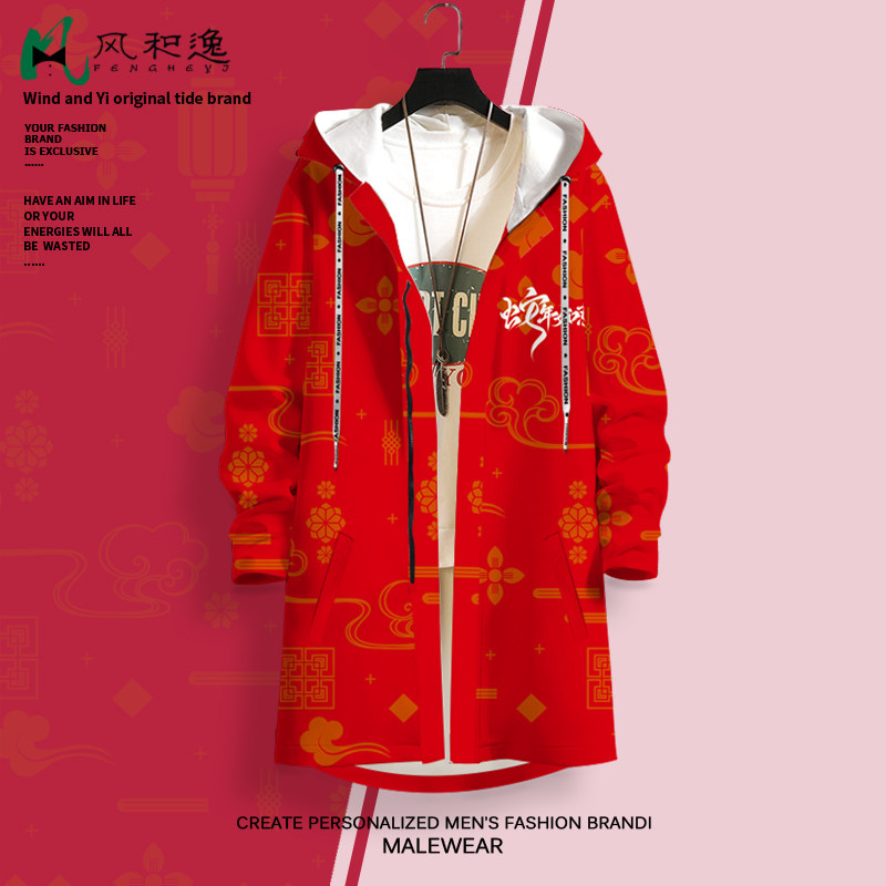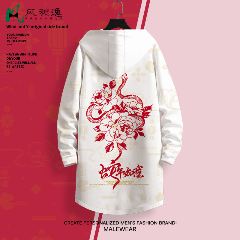 📚 春季风衣男生连帽薄款外套开衫大码休闲中长款大衣蛇年本命年衣服