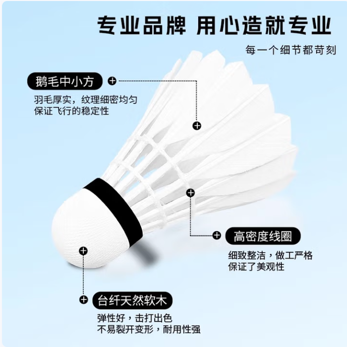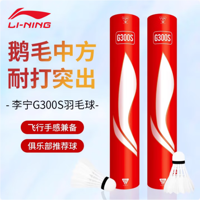 📚 李宁羽毛球G300S鹅毛中方飞行稳定娱乐训练球室内外用球