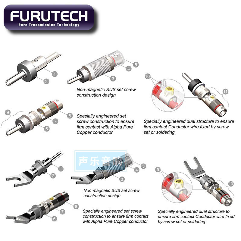 📚 日本古河Furutech CF-201 NCF(R)镀铑 免焊喇叭Y插 CF-202香蕉头