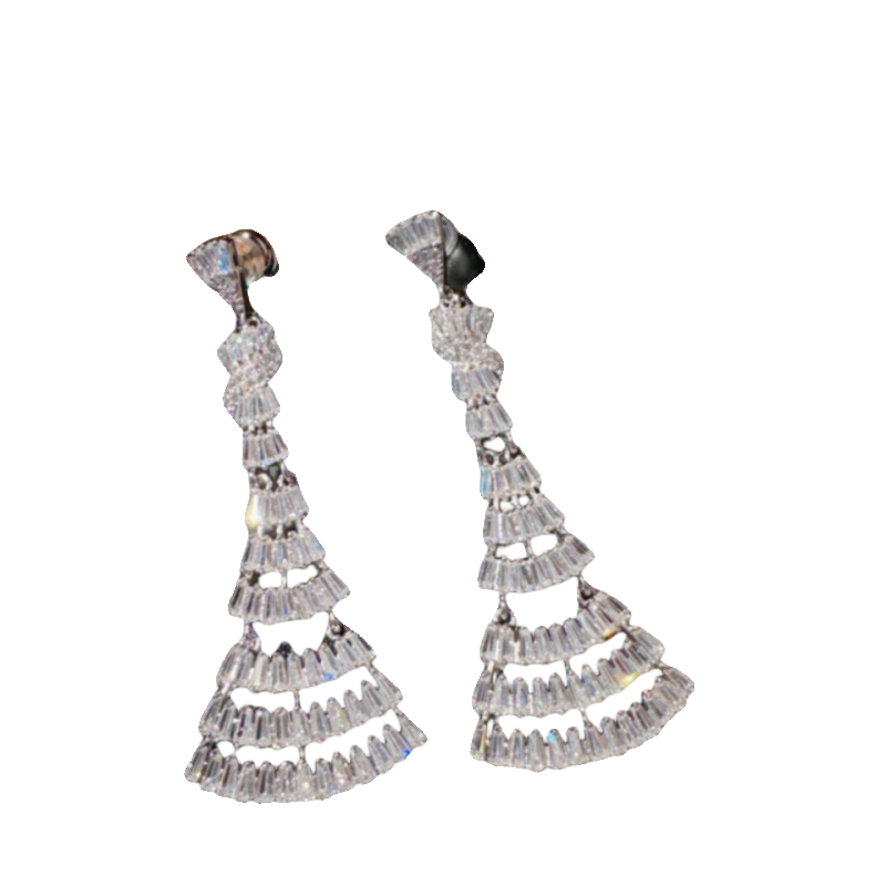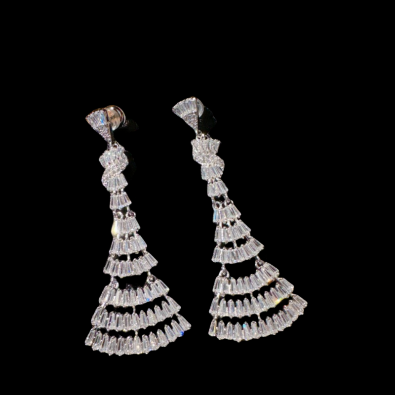 📚 冰晶霜花雪花宝石戒指 富家千金 镀18K金 光芒花瓣方糖锆石耳环