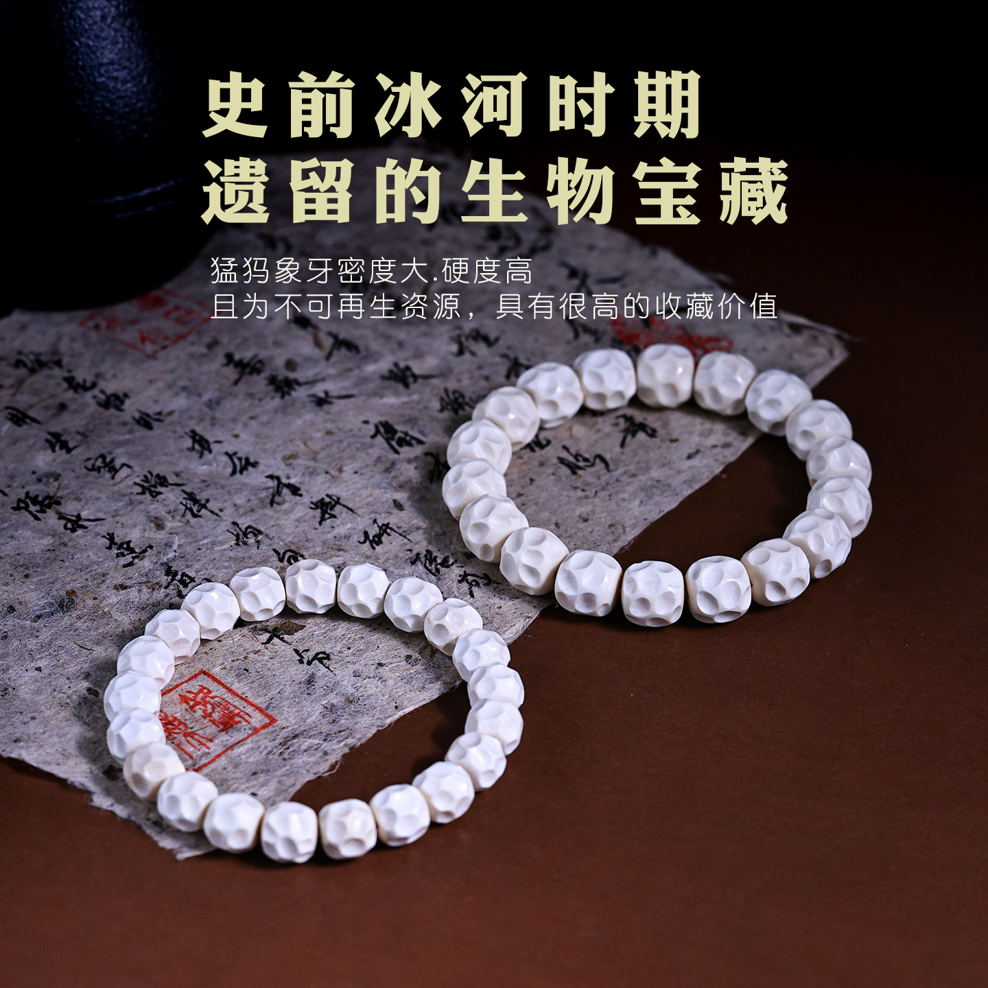 📚 djy天然猛犸象牙手串高瓷冰料无相手链文玩佛珠手链念珠男女礼物