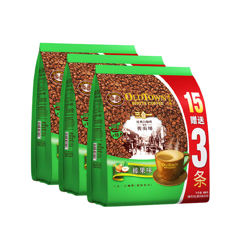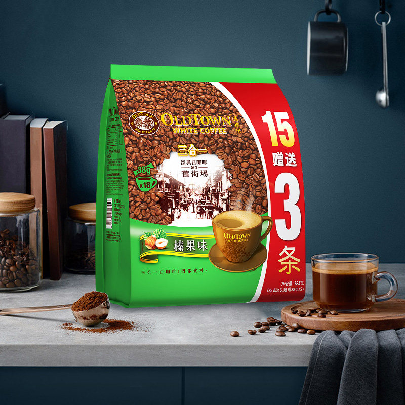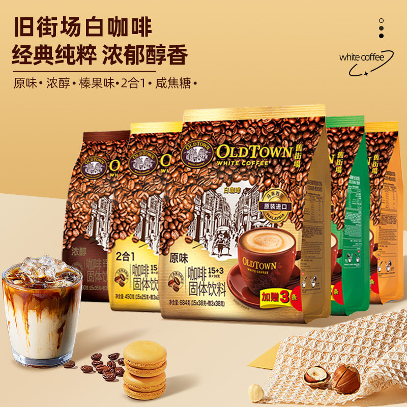 📚 马来西亚原装进口oldtown旧街场速溶白咖啡老街场三合一榛果原味