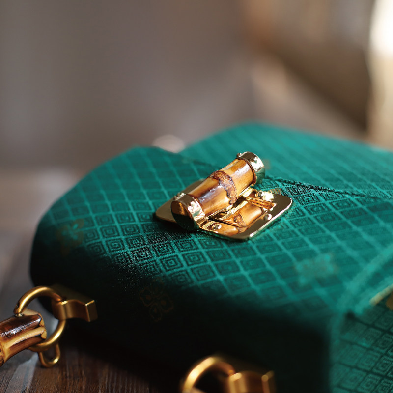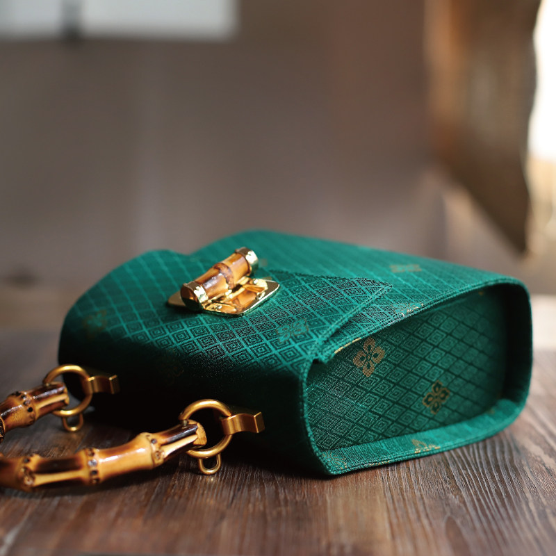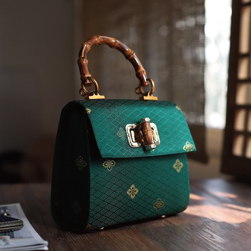 📚 双姊妹原创绿色锁扣竹柄手提包女包可斜挎复古优雅2025新品国风礼