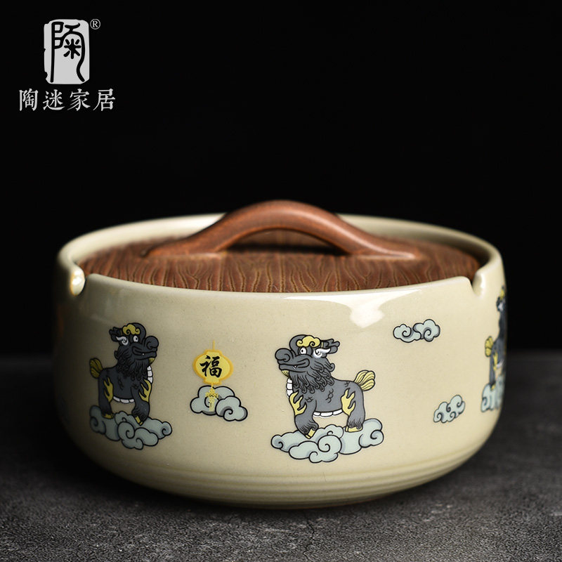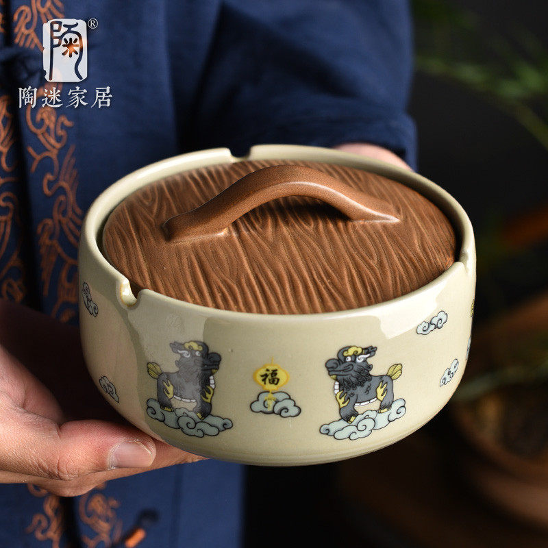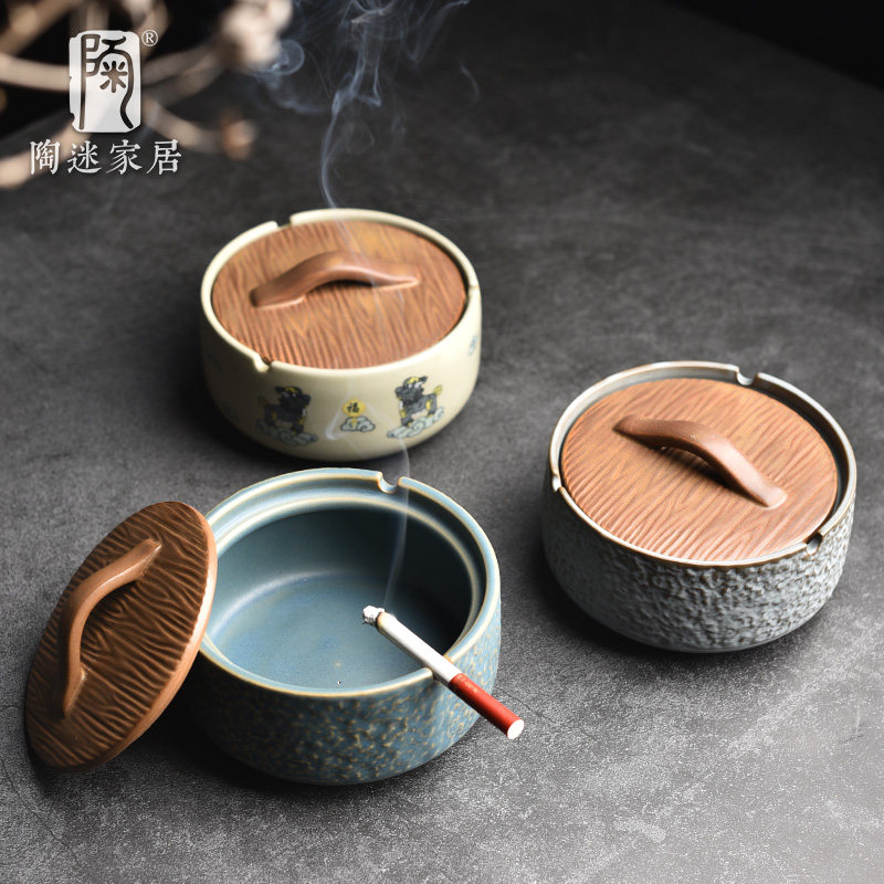 📚 陶迷带盖烟灰缸大号防飞灰烟缸桌面收纳陶瓷家用办公潮流烟缸