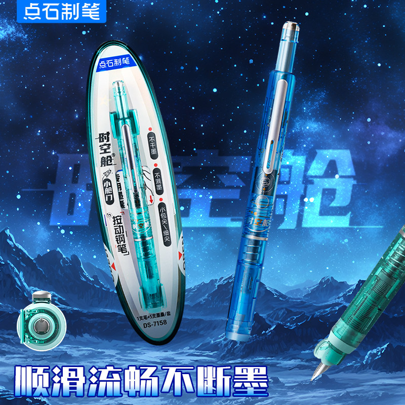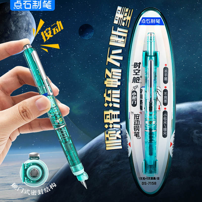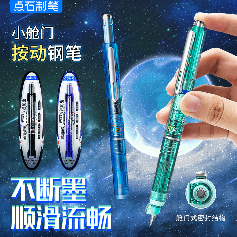 📚 点石制笔时空舱钢笔小舱门按动新款暗尖包头小学生专用书写练字三四五六年级男女生可换墨囊EF0.38mm按压式