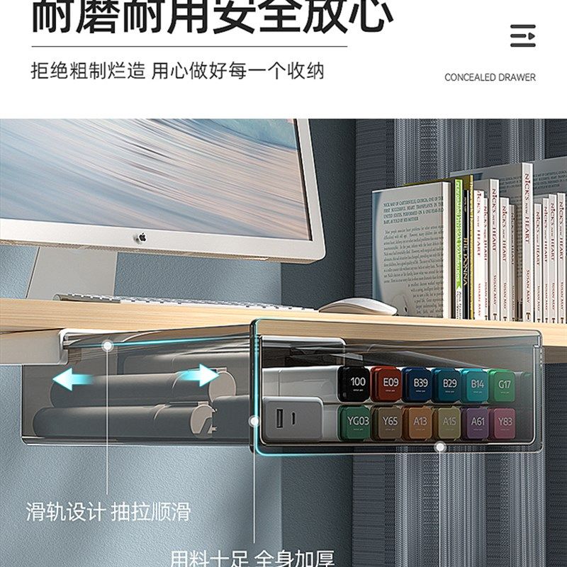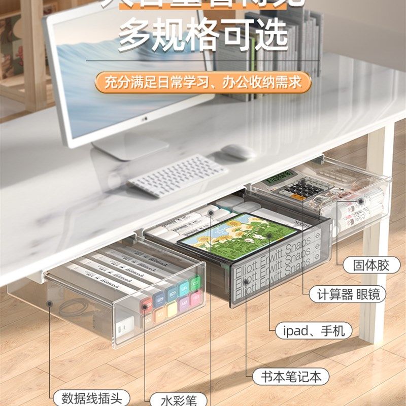 📚 现货速发桌子底下置物架下面桌下抽屉式收纳盒桌面办公室工位书桌