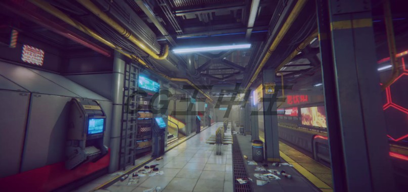 📚 unity3d 影视写实赛博风格都市城市街道高楼地铁灯光招牌场景环境