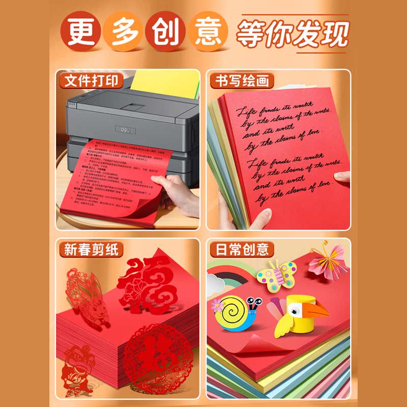 📚 【十色混装】得力80g彩色a4纸打印纸彩纸彩色纸复印纸红色蓝色加厚70g100张粉色A4幼儿园儿童学生用手工折纸