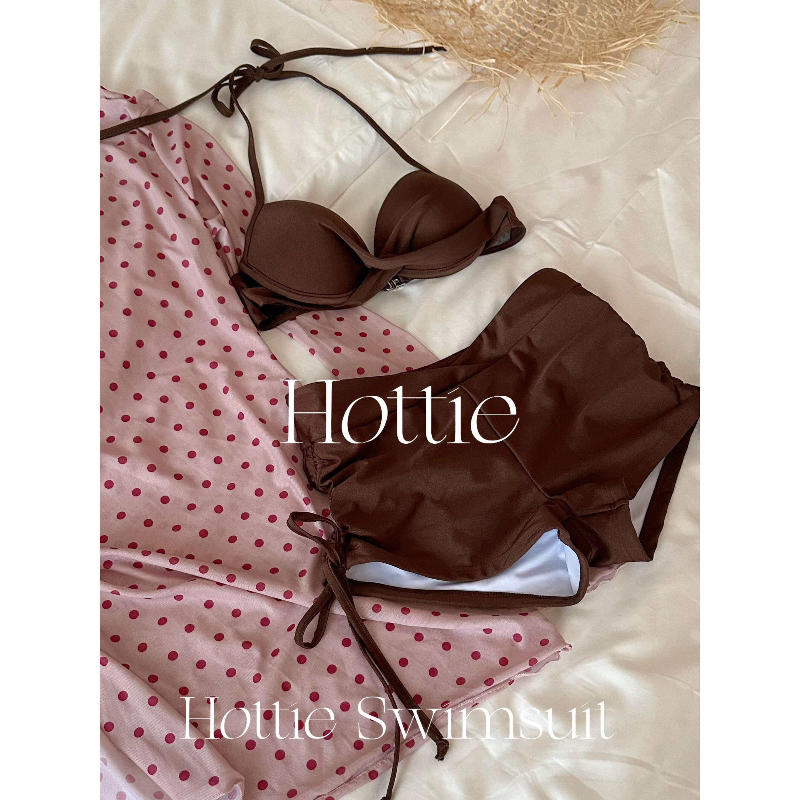📚 纯欲少女粉色波点网衫罩衫钢托bikini三件套海边温泉度假拍照泳衣