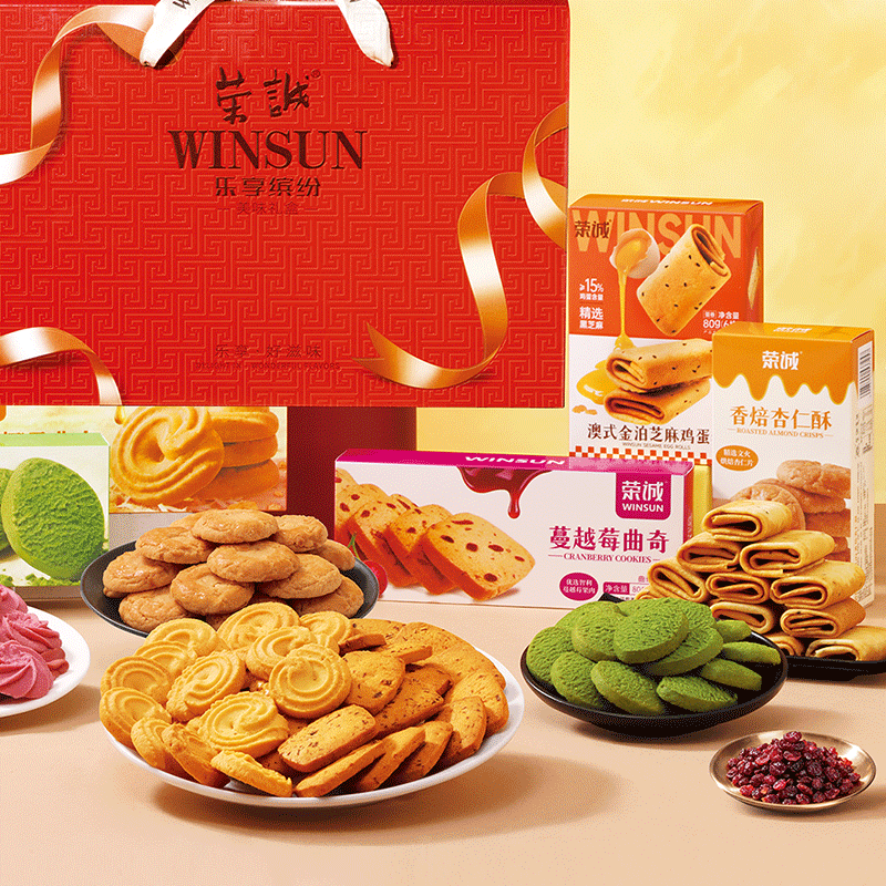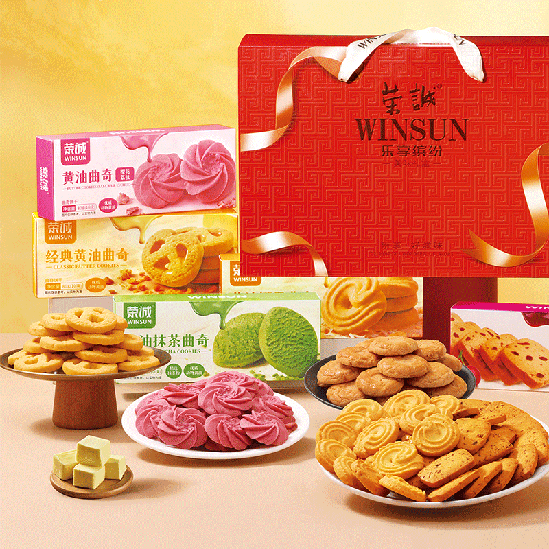 📚 荣诚乐享缤纷年货黄油抹茶樱花曲奇黑芝麻酥蛋卷多口味送礼礼盒