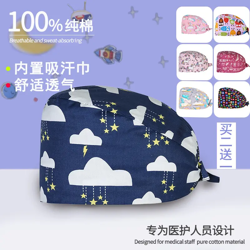📚 手术帽女护士纯棉手术室帽子口腔医生印花帽可爱百搭松紧带麻醉帽