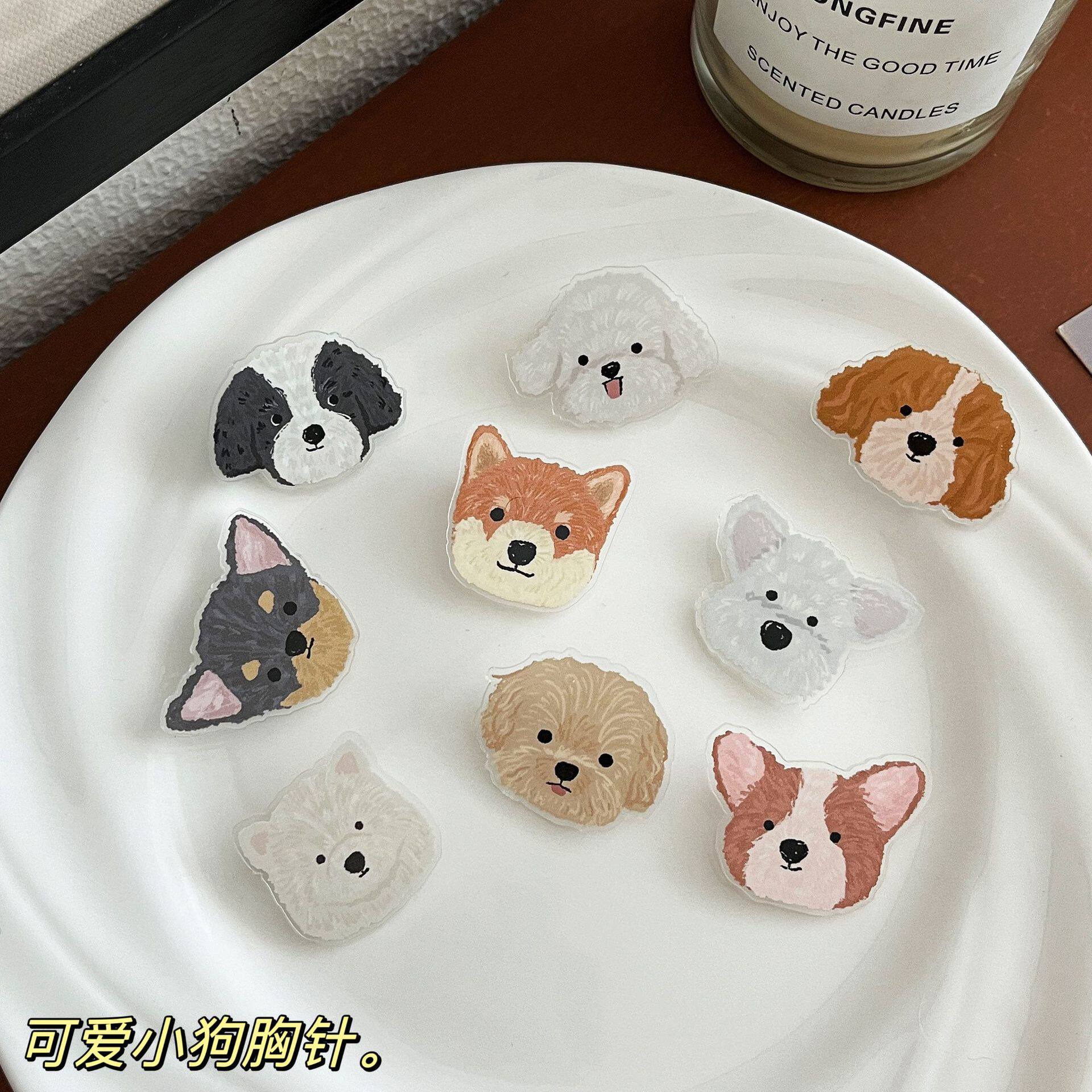 📚 柯基胸针INS可爱卡通金毛别针亚克力徽章包包挂件小饰品摆地摊