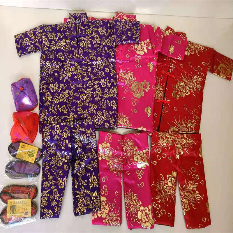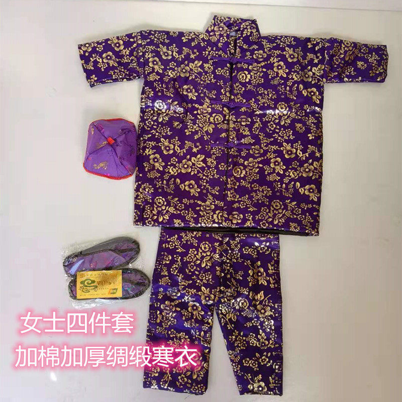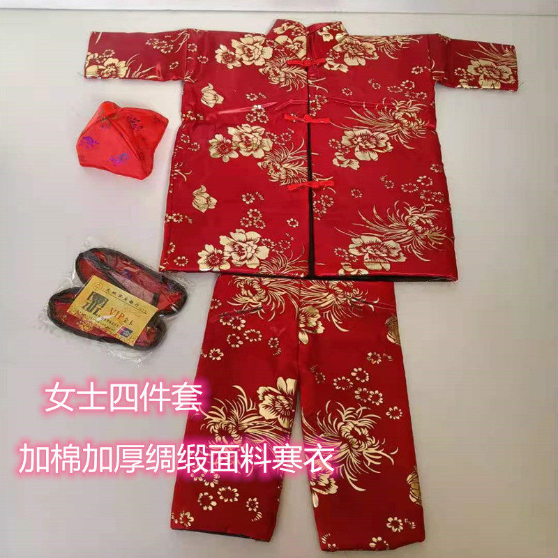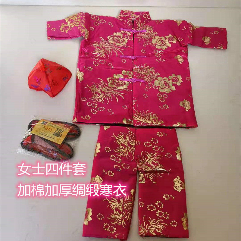 📚 祭祀用品寒衣节一套女士寒衣套装绸缎布料棉衣棉裤布鞋袜子烧纸