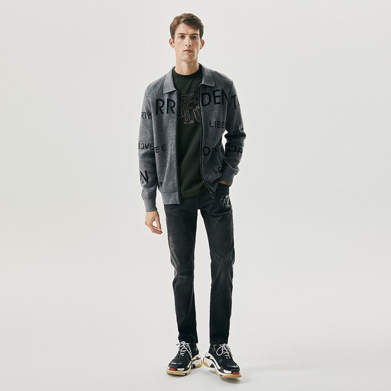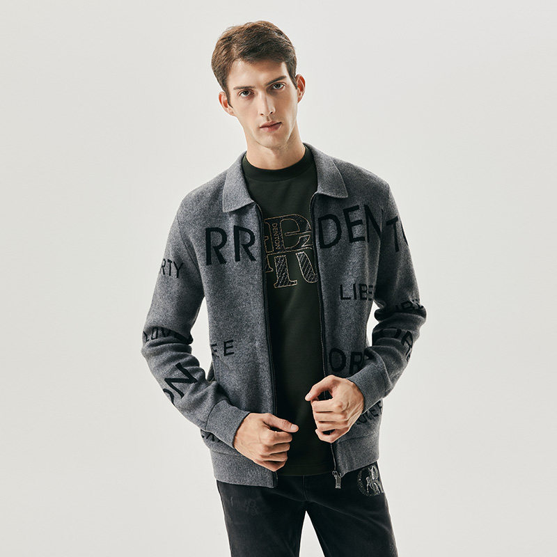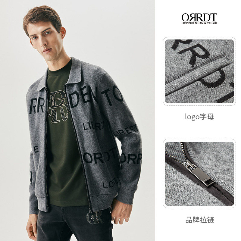📚 ORRDT澳林丹顿夹克上衣秋季新款时尚撞色提花图案翻领外套