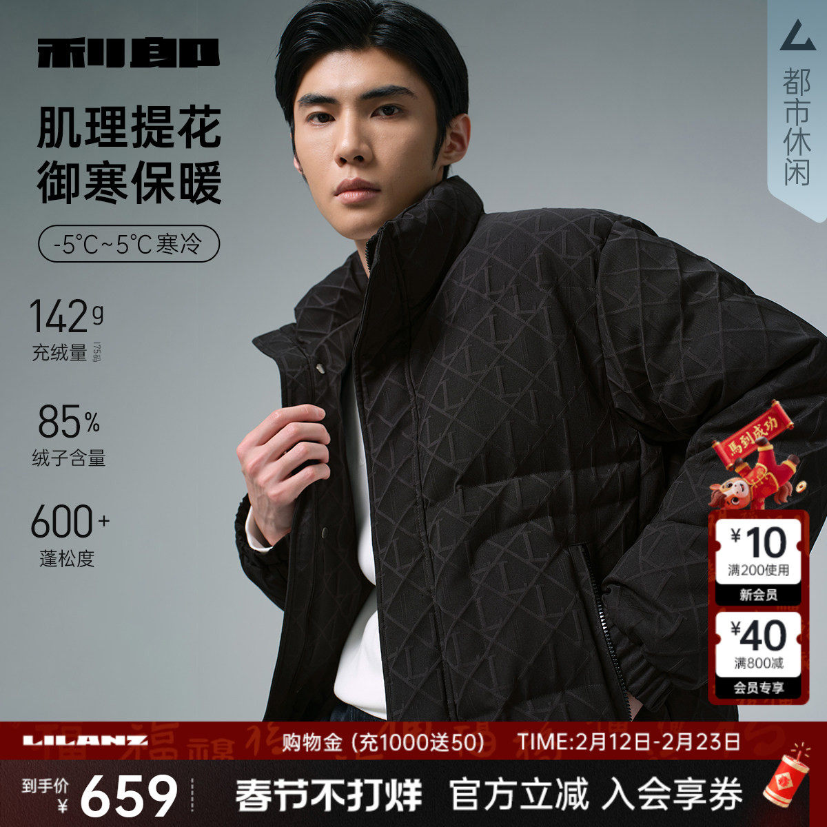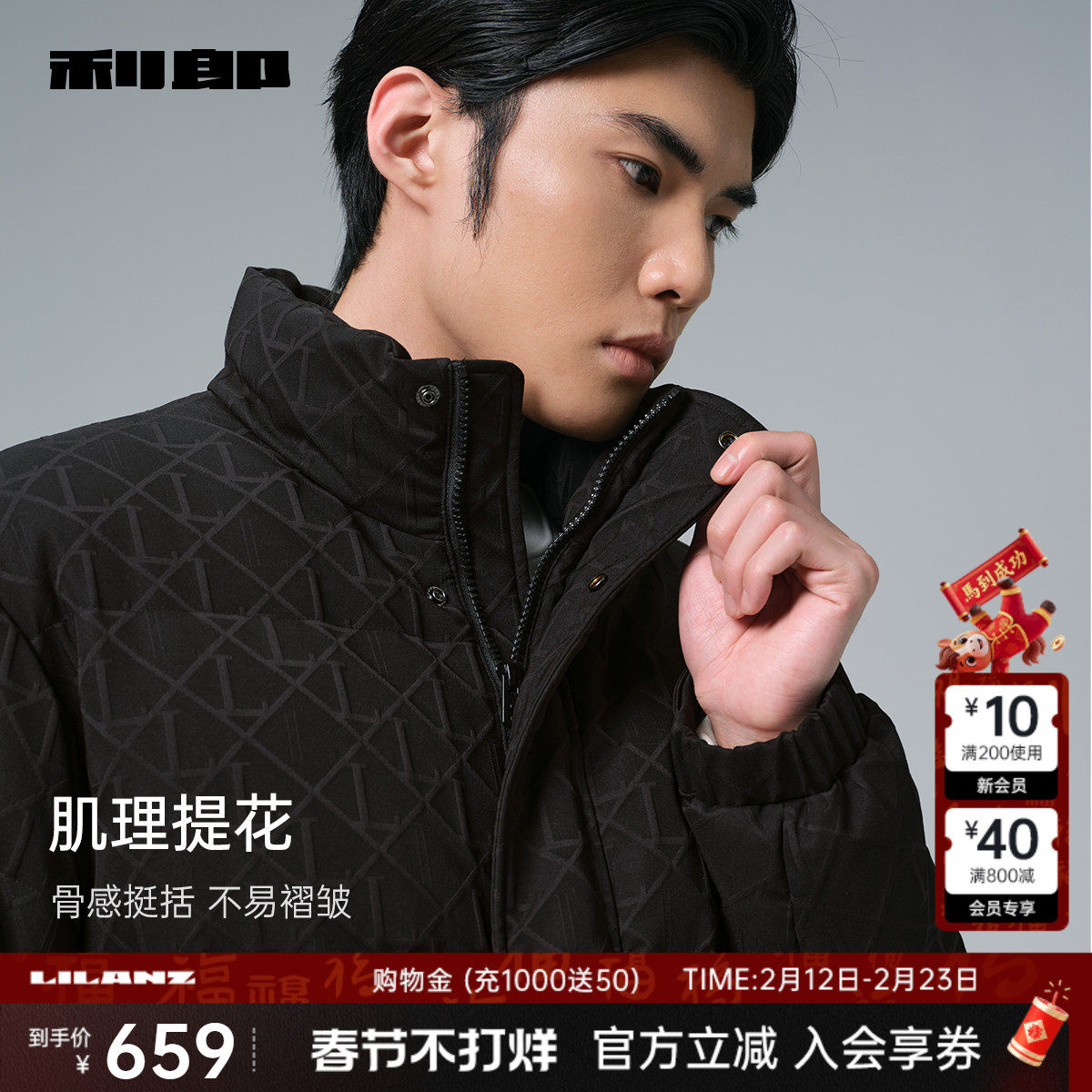 📚 【肌理提花】利郎官方 短款羽绒服男士立领2025冬季保暖外套男装