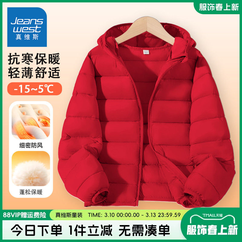 📚 真维斯童装男童棉服儿童冬季防风保暖外套中大童时尚红色轻薄棉袄