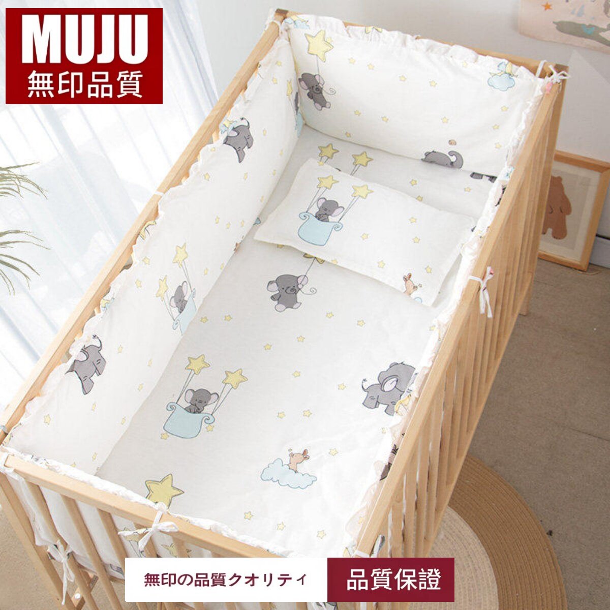 📚 无印日本纯棉婴儿床床围四件套 防摔软包寝具套件适用多尺寸A类安