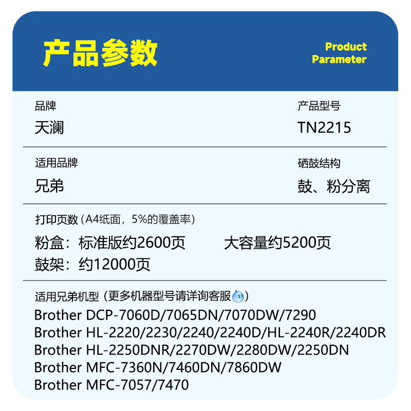 📚 适用兄弟MFC7360硒鼓TN2215粉盒DR2250 HL2240墨粉盒dcp7060D 7470打印机FAX2890 7055 7057 2130 7860DW