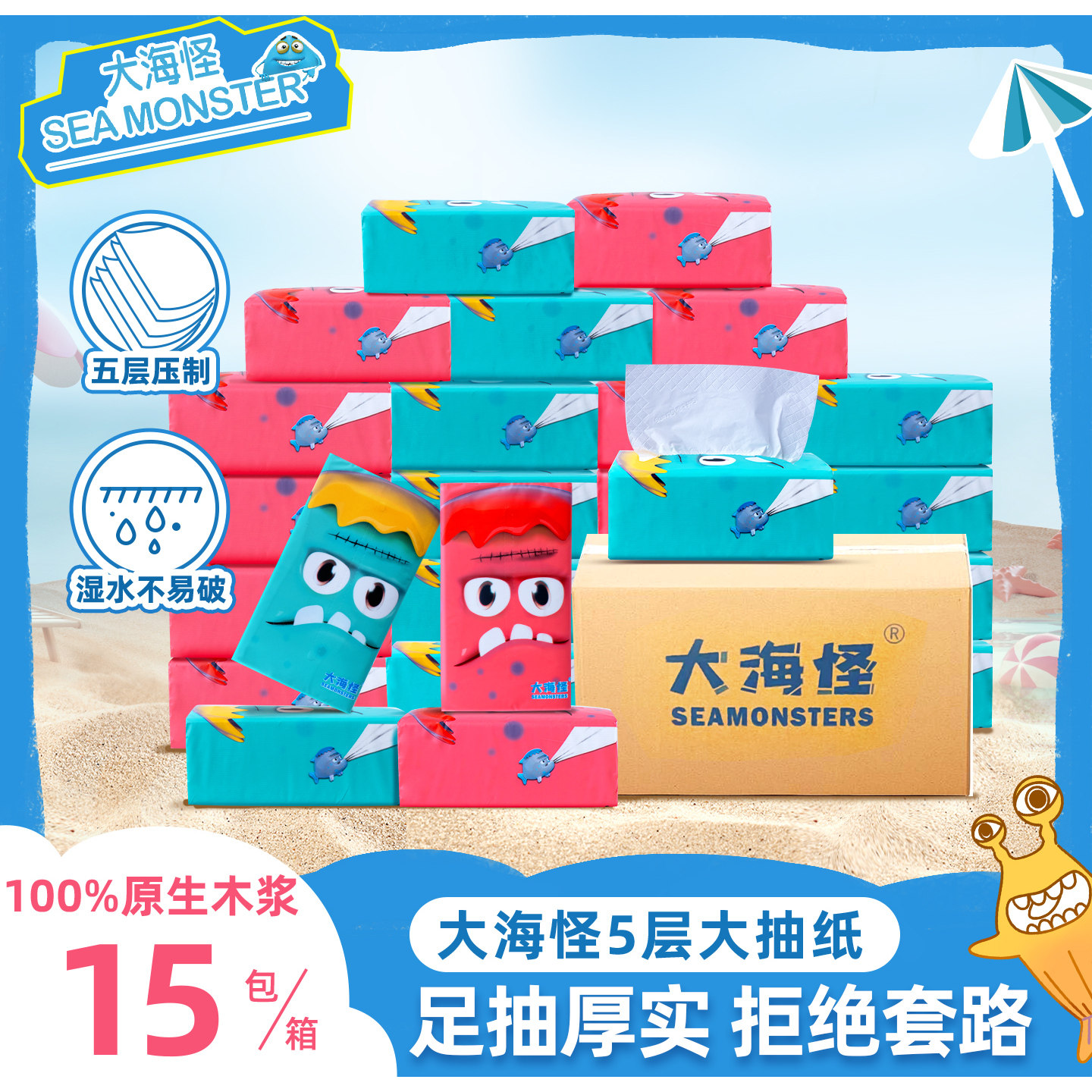📚 大海怪抽纸大包加厚L码家用餐巾纸面巾卫生纸实惠装宿舍5层可湿水